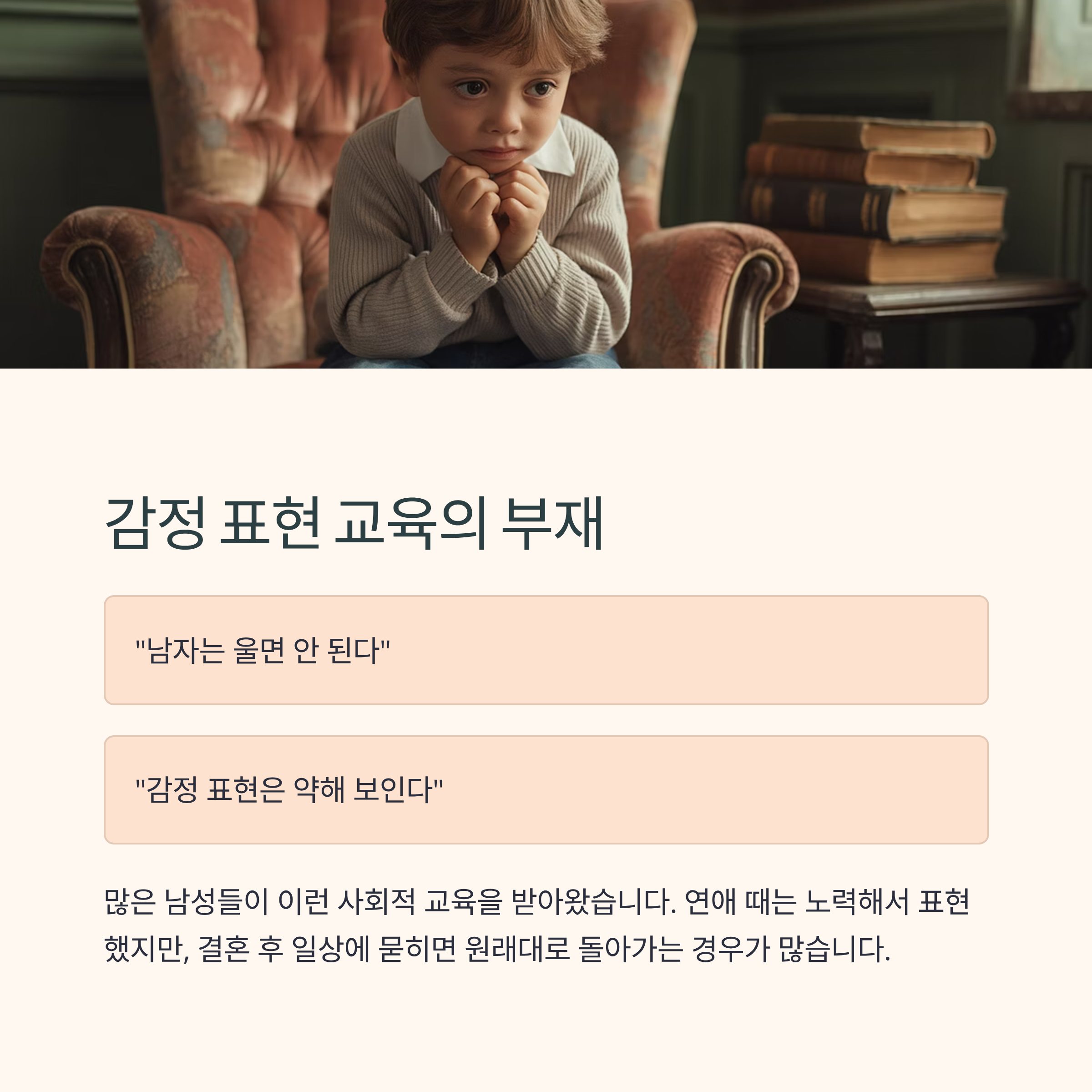 많은 남성들이 자라면서 “남자는 울면 안 된다”, “표현은 약해보인다”