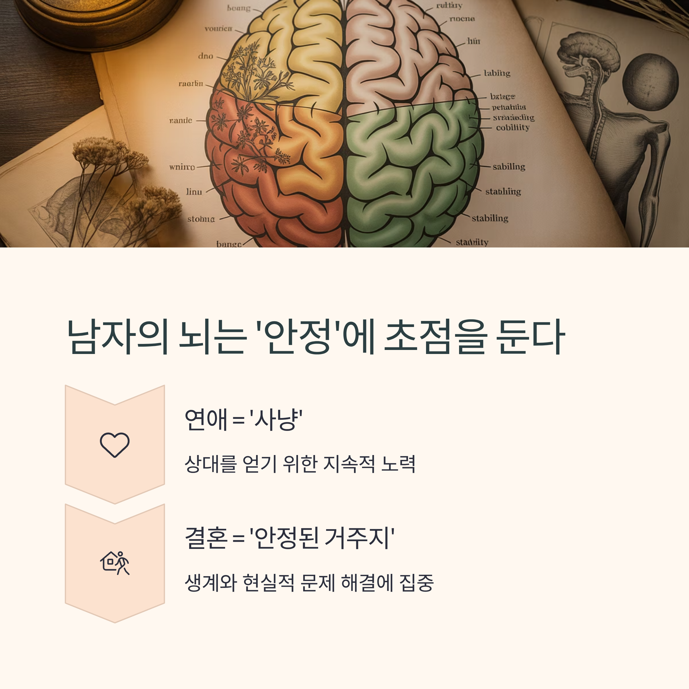 남자의 뇌는 결혼 후 '관계 안정'에 초점을 둔다
