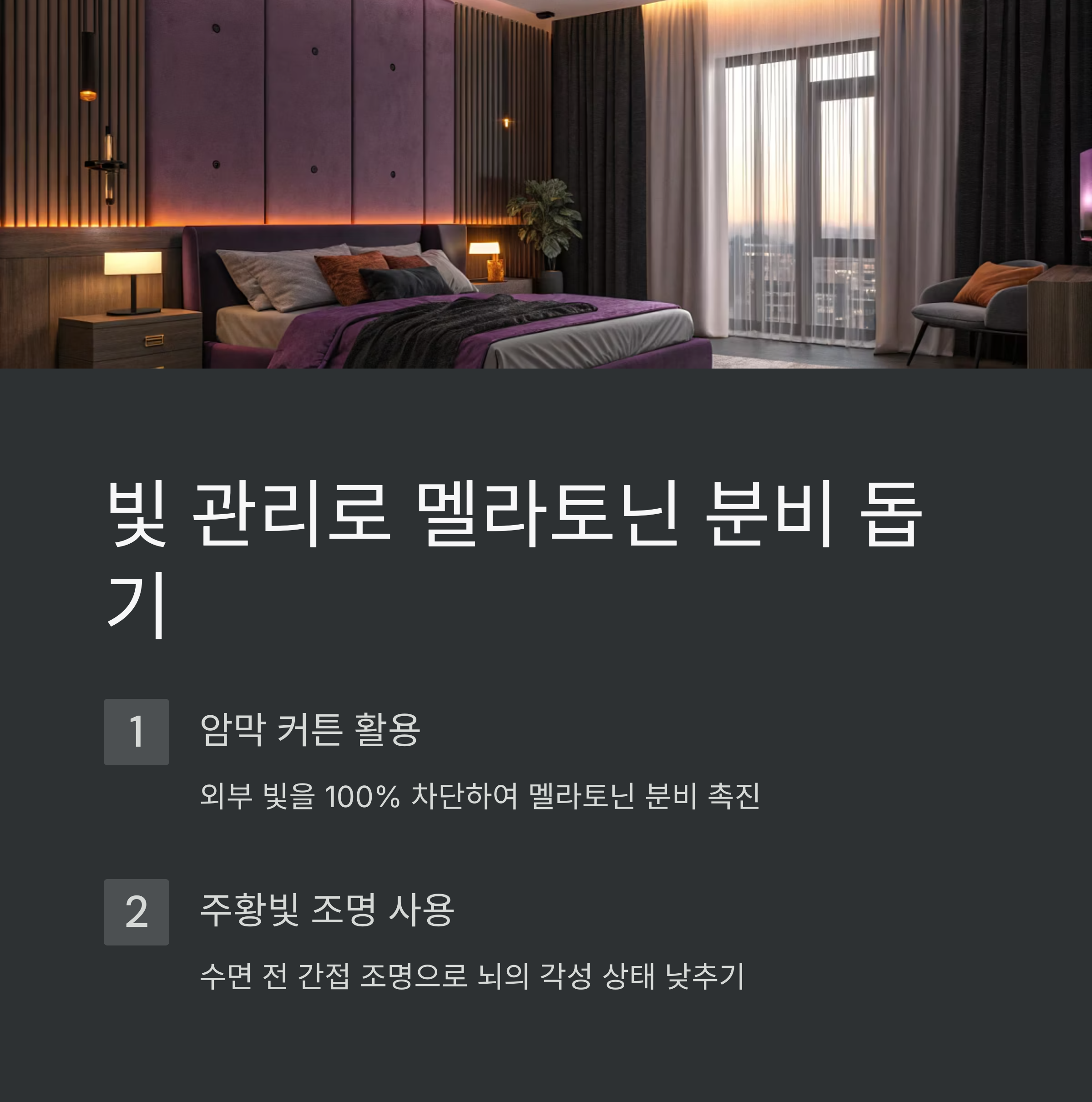 또한, 수면 전에는 주황빛 무드등이나 간접 조명으로