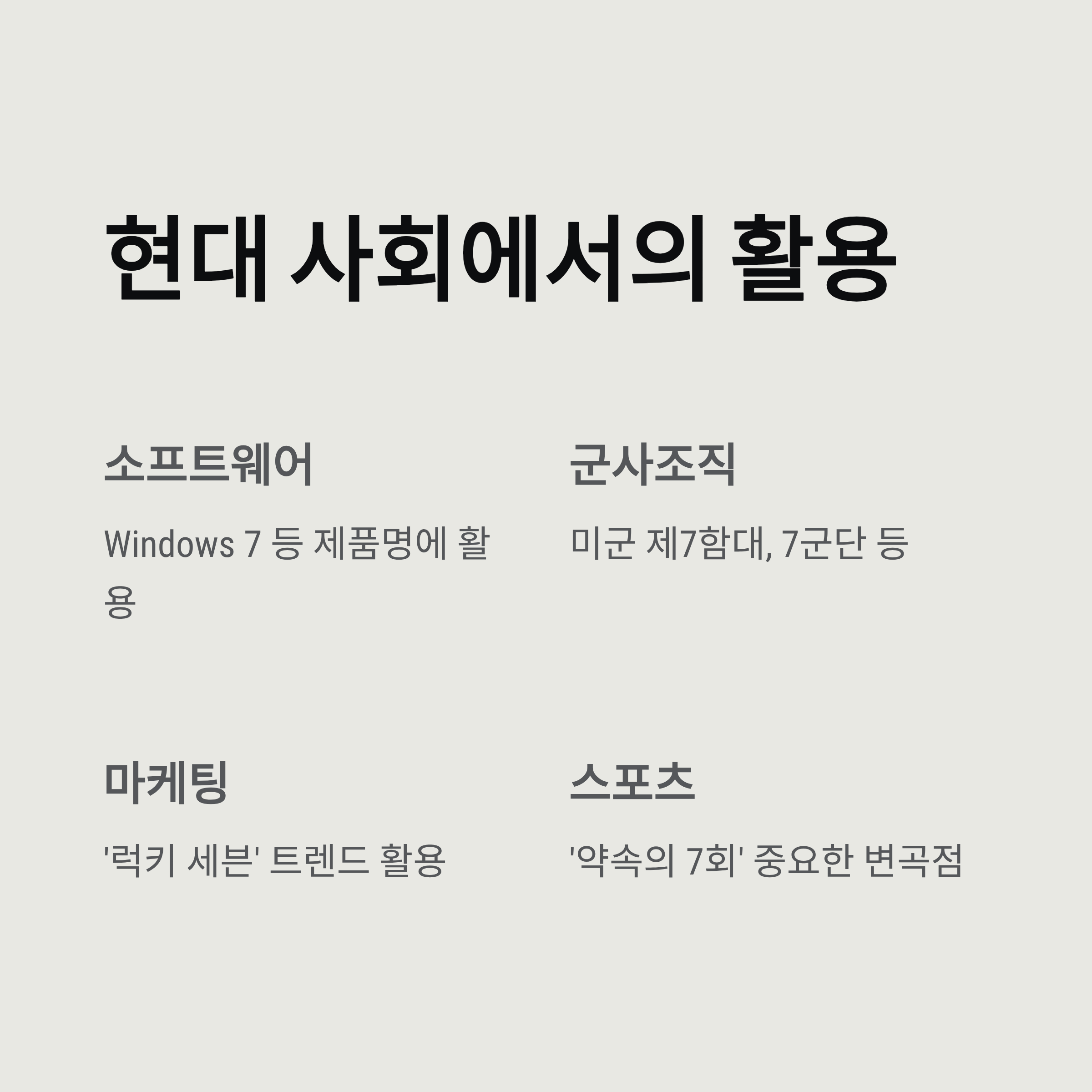 현대 사회에서 7이 활용되는 방식