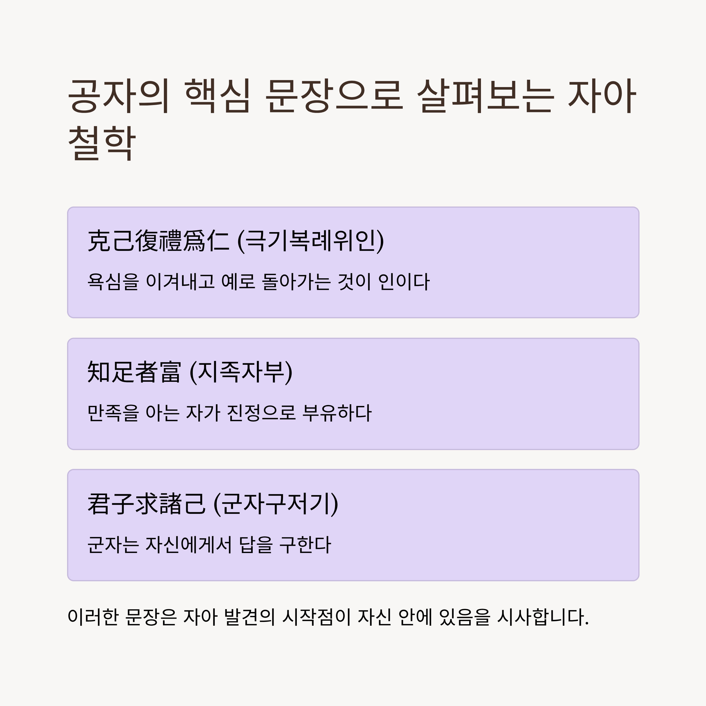다음은 공자의 말 중 자아와 욕심을 주제로 한 핵심 문장들입니다.