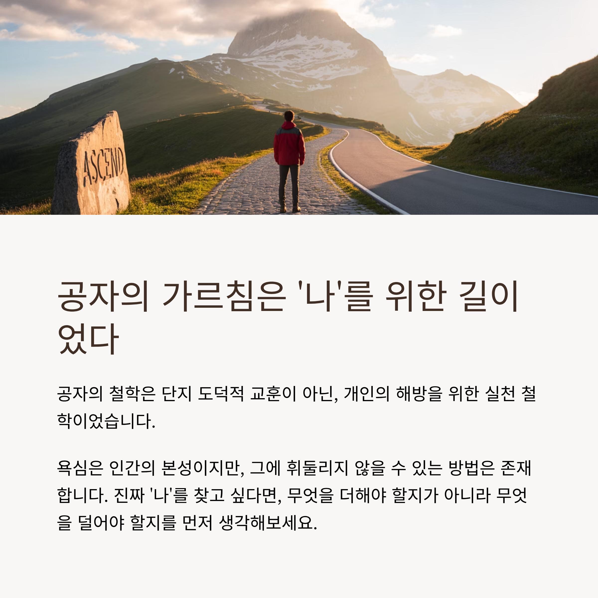 공자의 철학은 단지 도덕적 교훈이 아닌, 개인의 해방을 위한 실천 철학이었습니다.