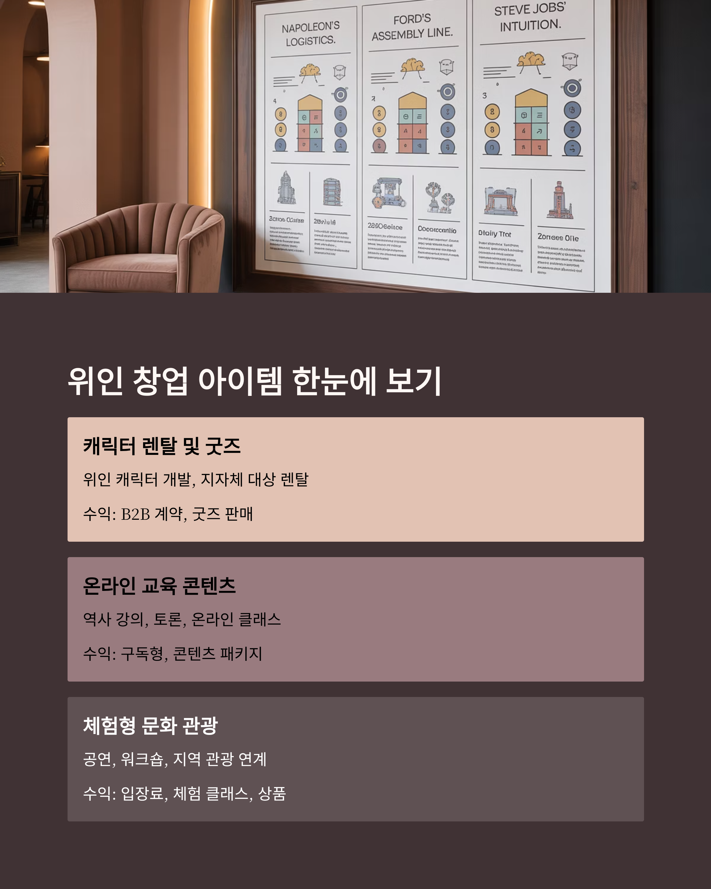 위인 창업 아이템은 단순히 문화 콘텐츠를 넘어서, 교육, 관광, 지역 경제 활성화까지 연결되는 강력한 아이템입니다.