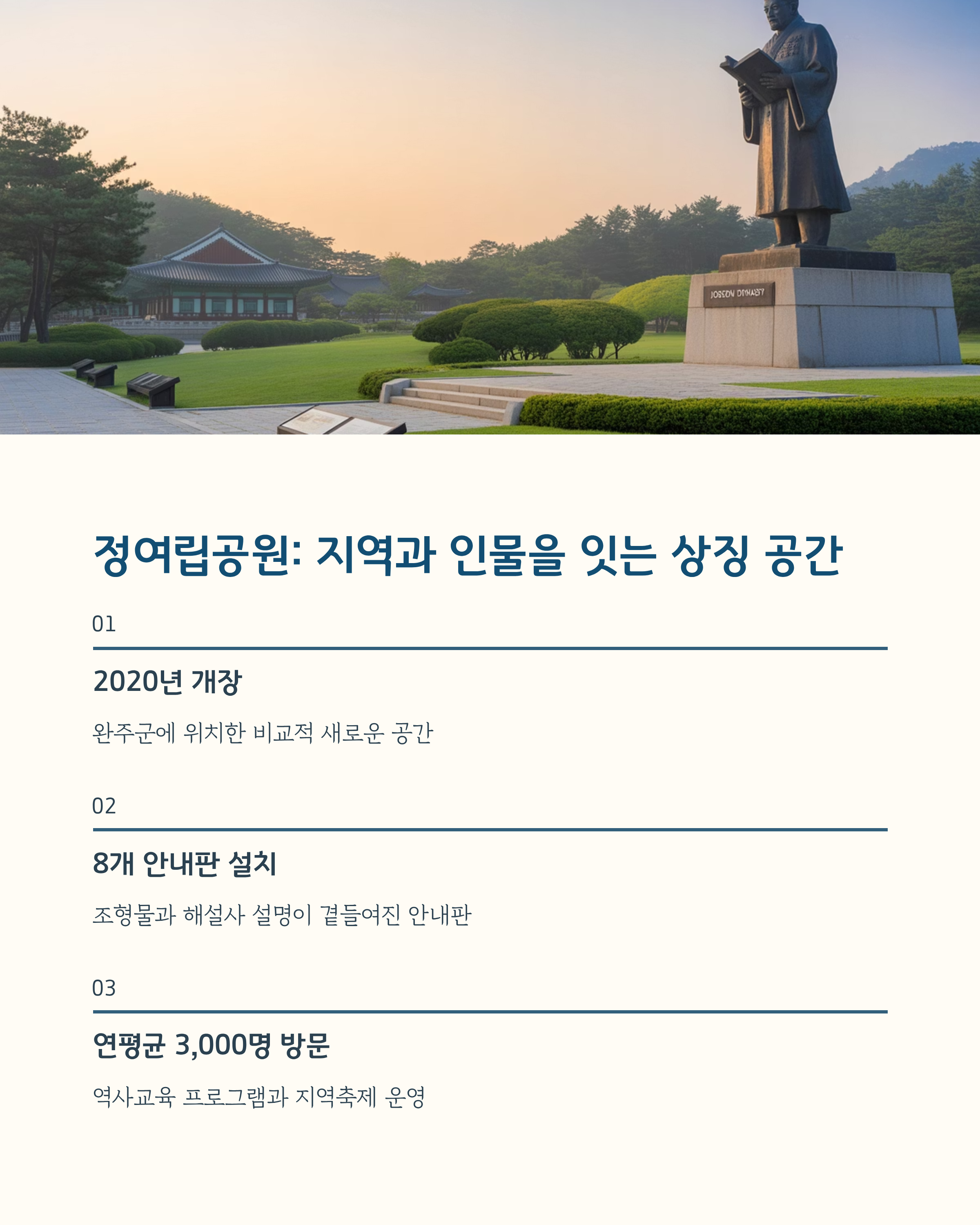 완주군에 위치한 정여립공원은 2020년에 개장한 비교적 새로운 공간입니다.