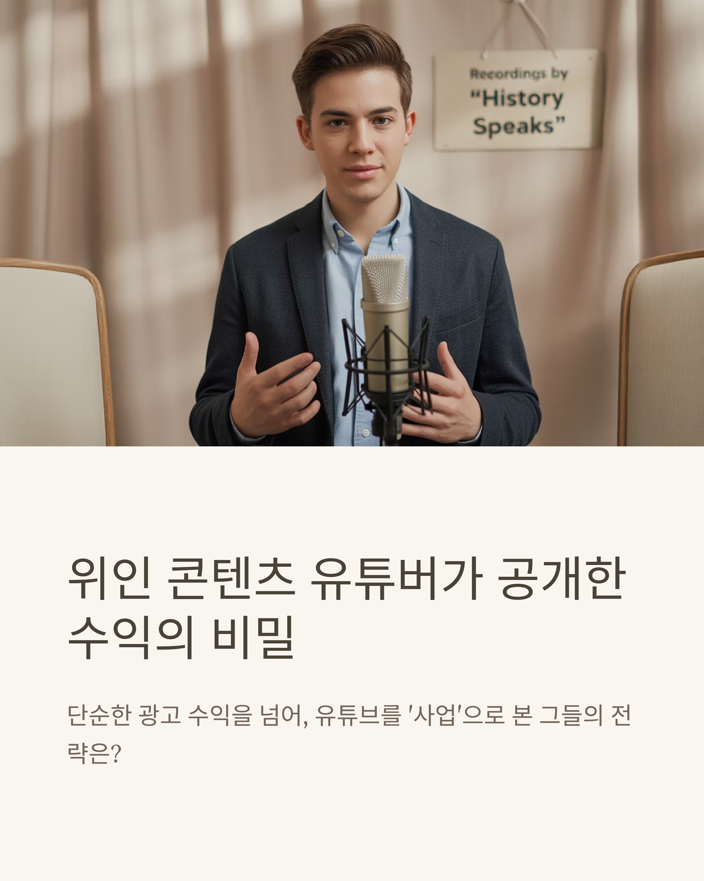 유튜브에서 위인을 주제로 콘텐츠를 만드는 유튜버들이 단순한 조회수에 만족하지 않고, 실질적인 수익을 극대화하는 다양한 전략을 활용하고 있다는 사실, 알고 계셨나요? 상위 0.1% 유튜버들의 수익 구조를 분석해보면, 광고 수익은 시작일 뿐이며, 콘텐츠를 하나의 사업체처럼 운영하는 비즈니스 마인드와 집요한 노력의 결과물이라는 점을 알 수 있습니다.
