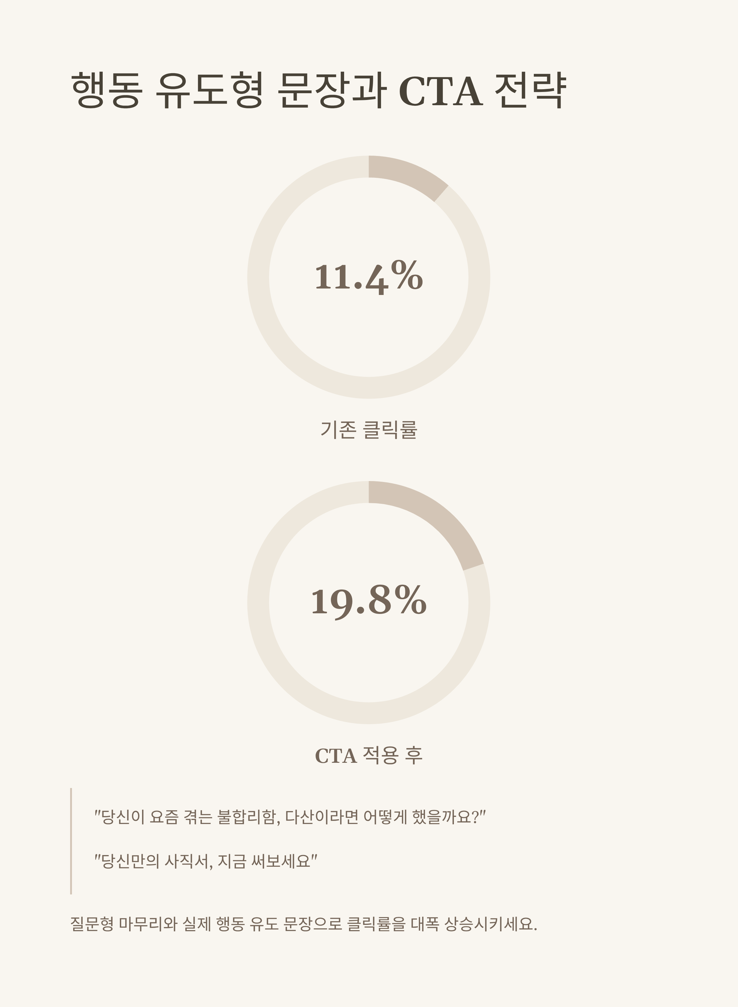 마지막에는 “당신이 요즘 겪는 불합리함, 다산이라면 어떻게 했을까요?” 같은 질문형 마무리나 “당신만의 사직서, 지금 써보세요” 같은 실제 행동 유도 문장을 삽입해보세요. 이 간단한 CTA는 평균 클릭률을 11.4%에서 19.8%까지 끌어올립니다.