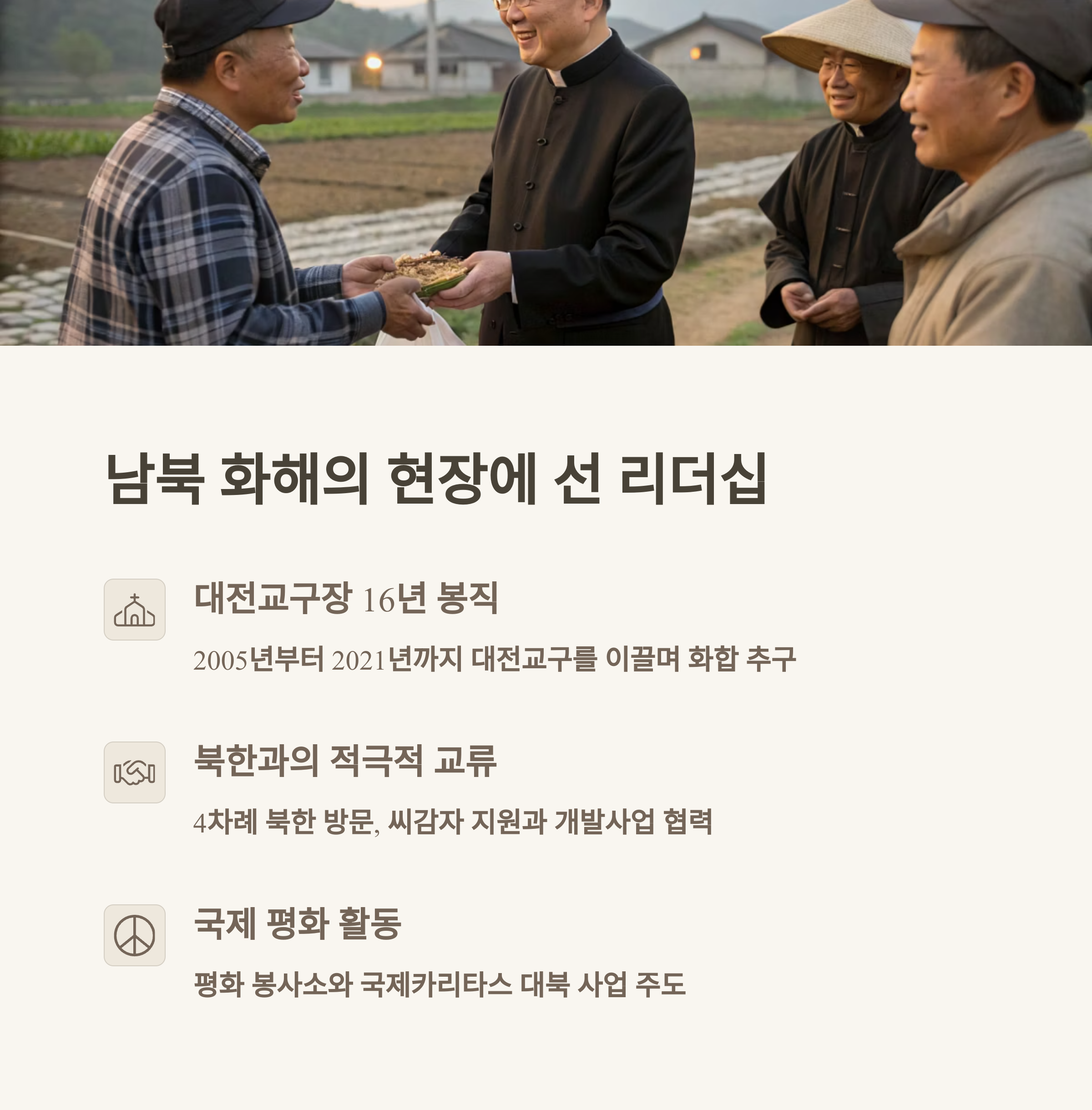 남북한 신앙 공동체의 교류에도 중요한 역할을 했습니다.