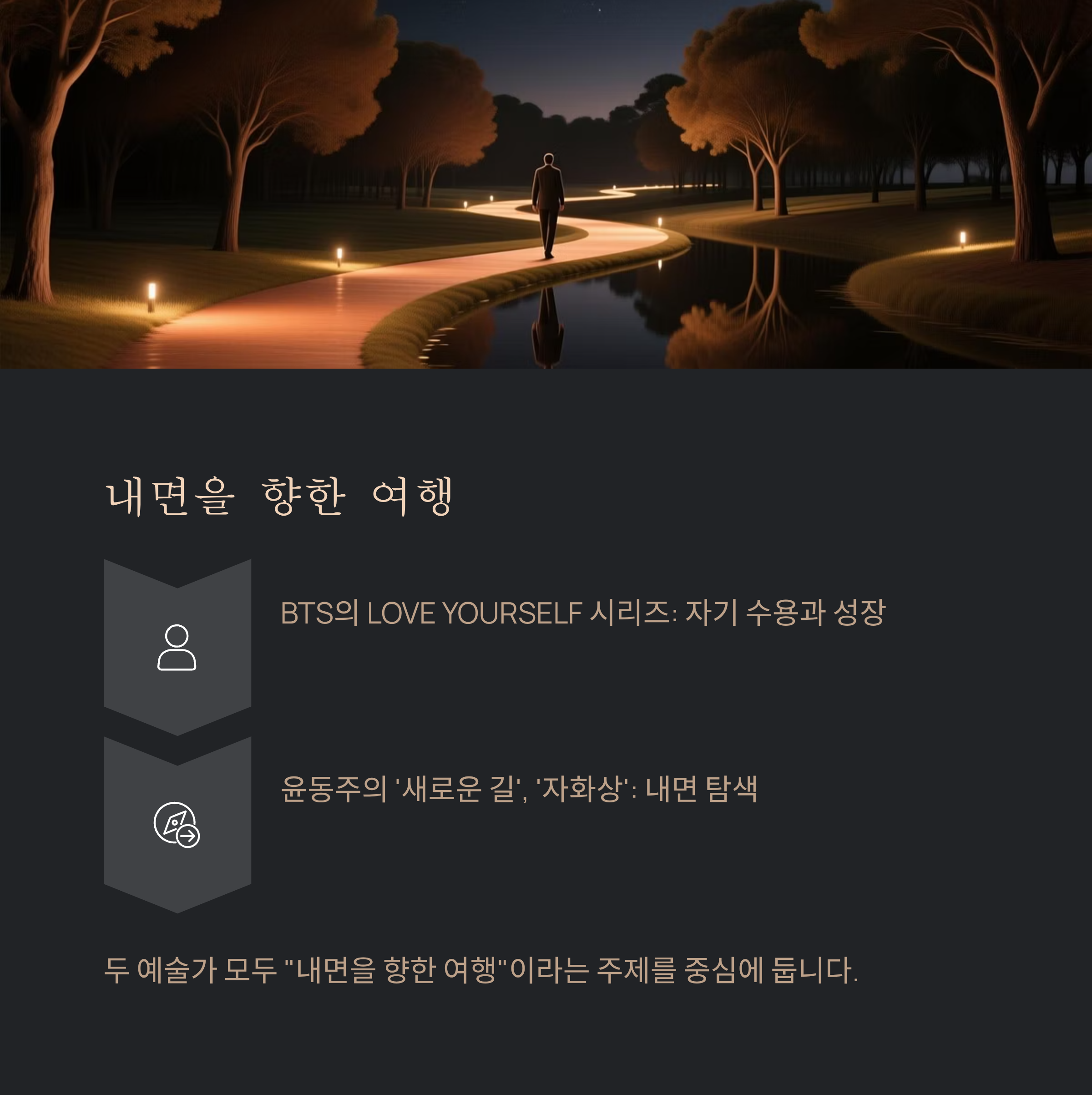 문학과 음악의 방식은 달라도 그들의 핵심 메시지—"자기 성찰과 위로"—는 일치합니다.
