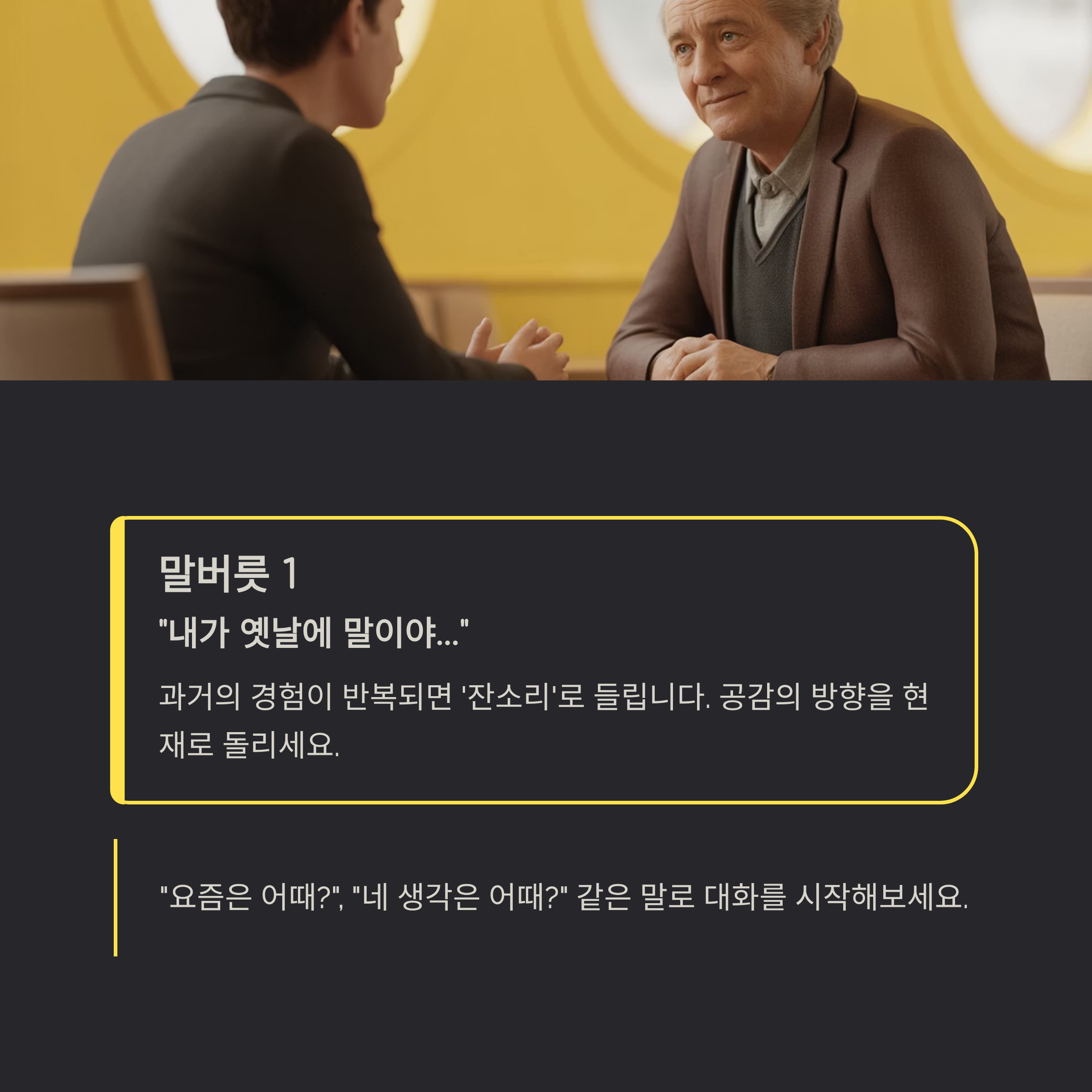 과거의 경험이 아무리 귀해도, 반복되면 ‘잔소리’로 들릴 수밖에 없죠.
