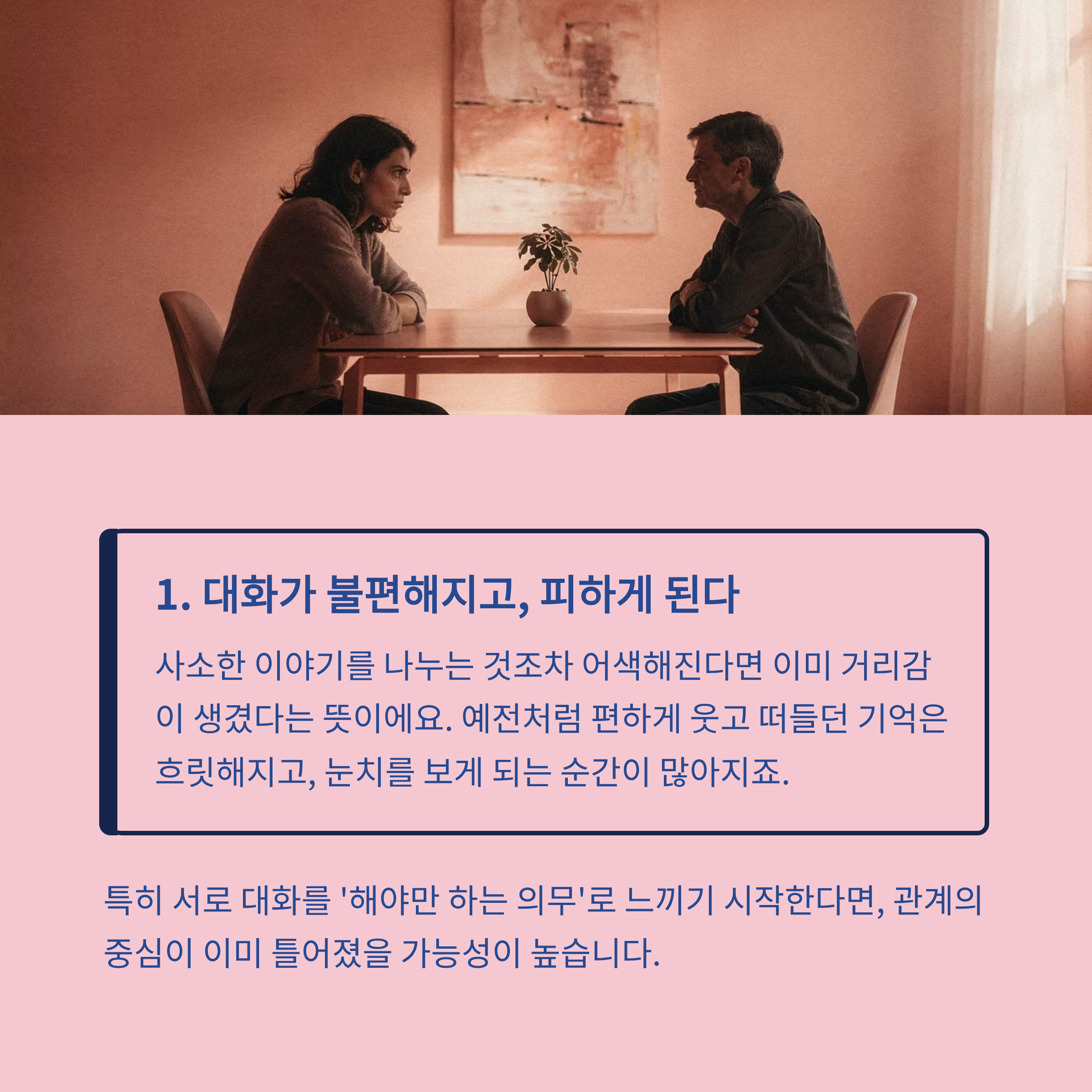 서로가 서로에게 편안함이 아닌 ‘부담’이 되고 있다는 신호입니다.
