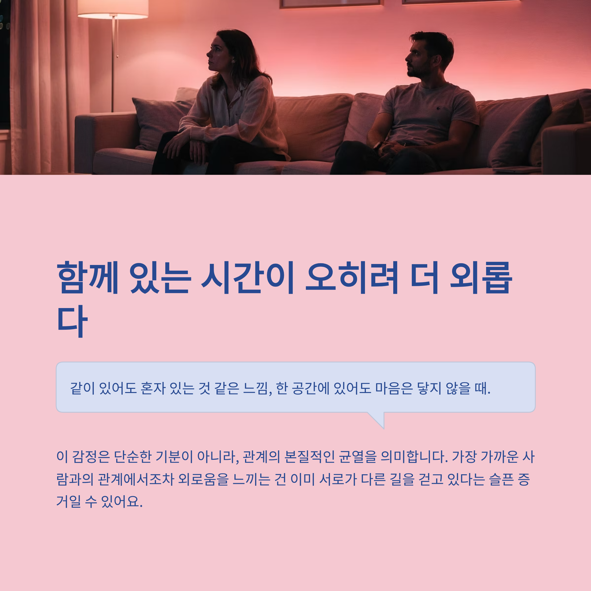 같이 있어도 혼자 있는 것 같은 느낌, 한 공간에 있어도 마음은 닿지 않을 때.