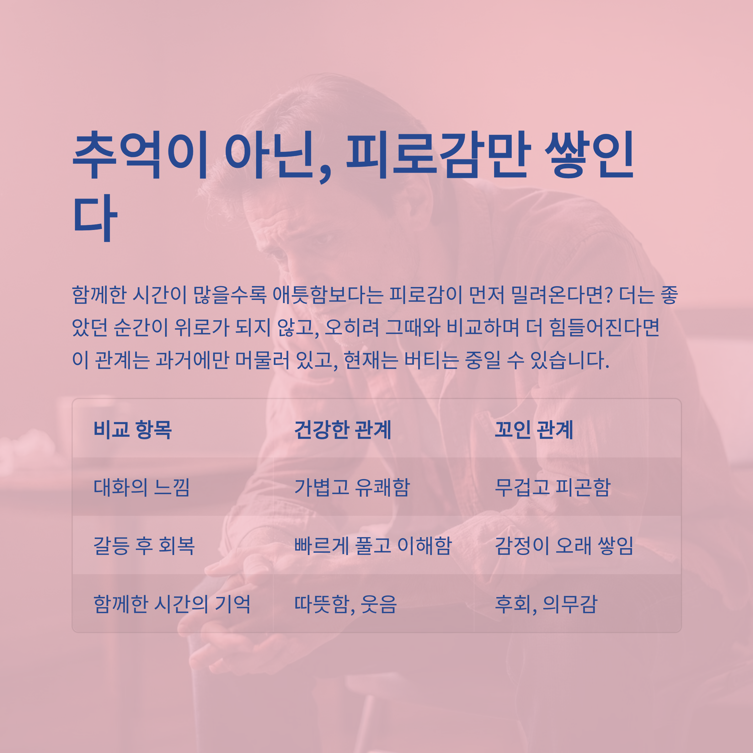 함께한 시간이 많을수록 애틋함보다는 피로감이 먼저 밀려온다면?
