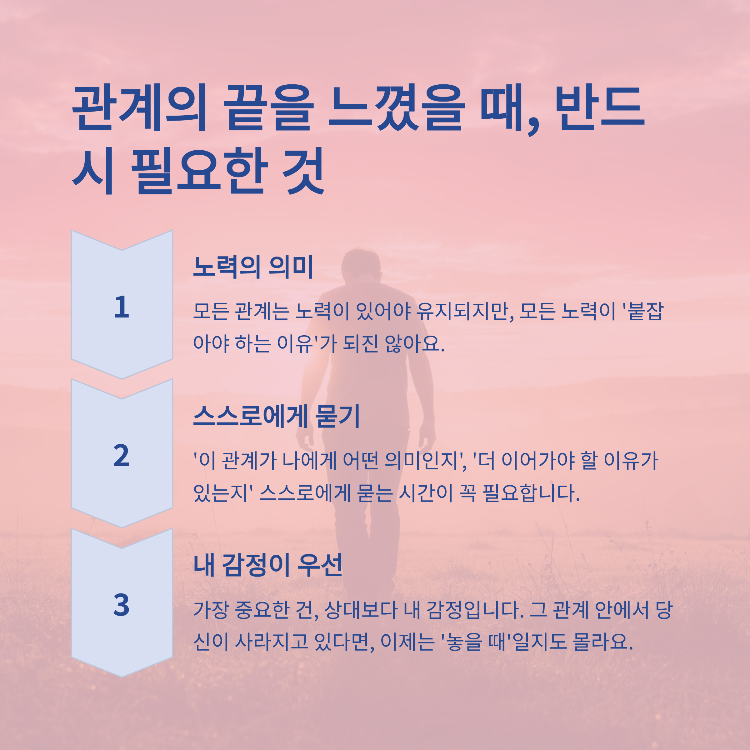 ‘이 관계가 나에게 어떤 의미인지’, ‘더 이어가야 할 이유가 있는지’ 스스로에게 묻는 시간이 꼭 필요합니다.