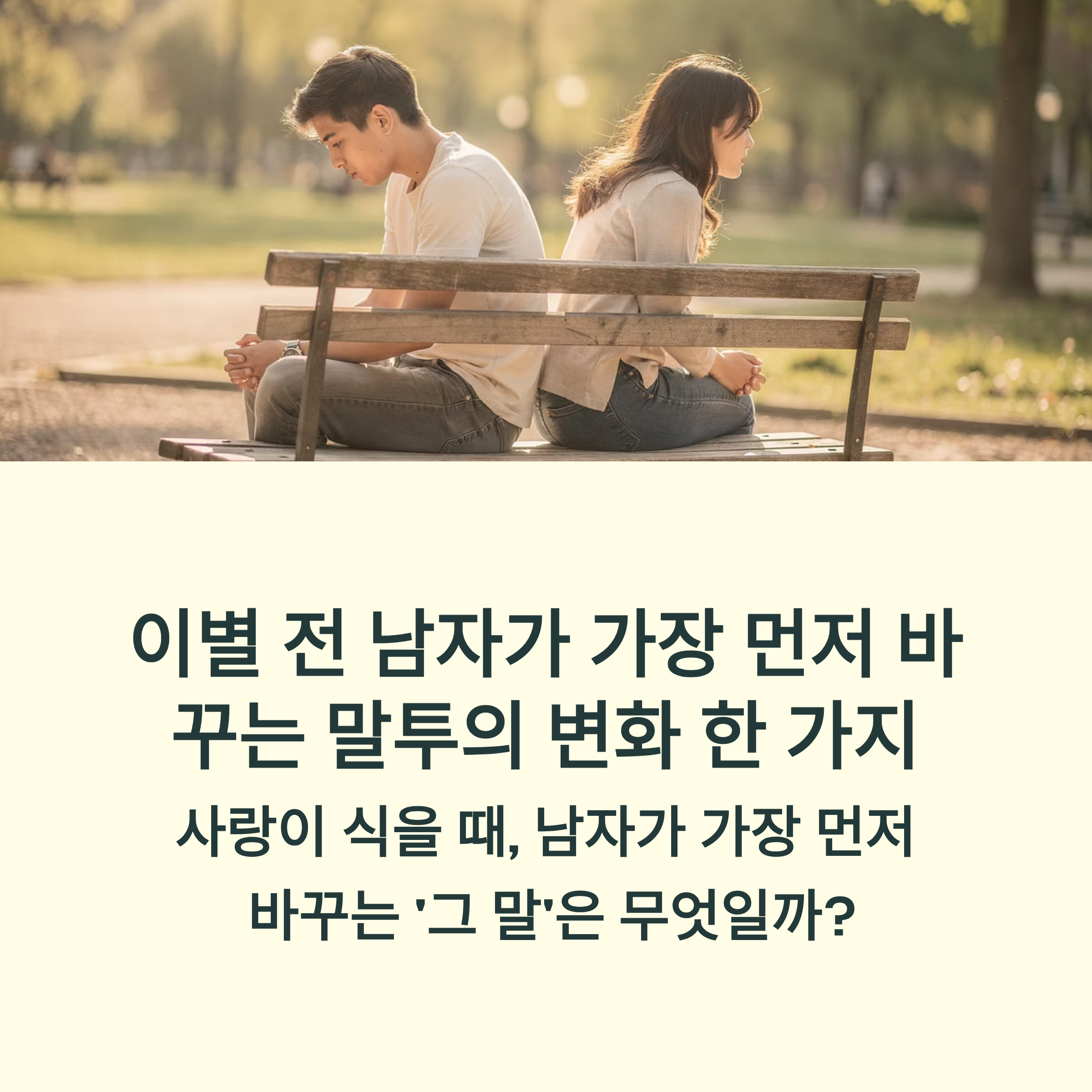 이별은 언제나 갑작스럽게 다가오는 것처럼 느껴지지만, 사실 그 징조는 아주 작은 변화에서부터 시작됩니다. 특히 남성의 경우, 감정의 변화를 말투나 단어 선택에서 은근히 드러내곤 하지요. 오늘은 그중에서도 ‘이별 전 남자가 가장 먼저 바꾸는 단어’에 대해 이야기해볼게요. 평소와 달라진 말 한마디에서 그의 마음을 읽을 수 있을지도 모릅니다.