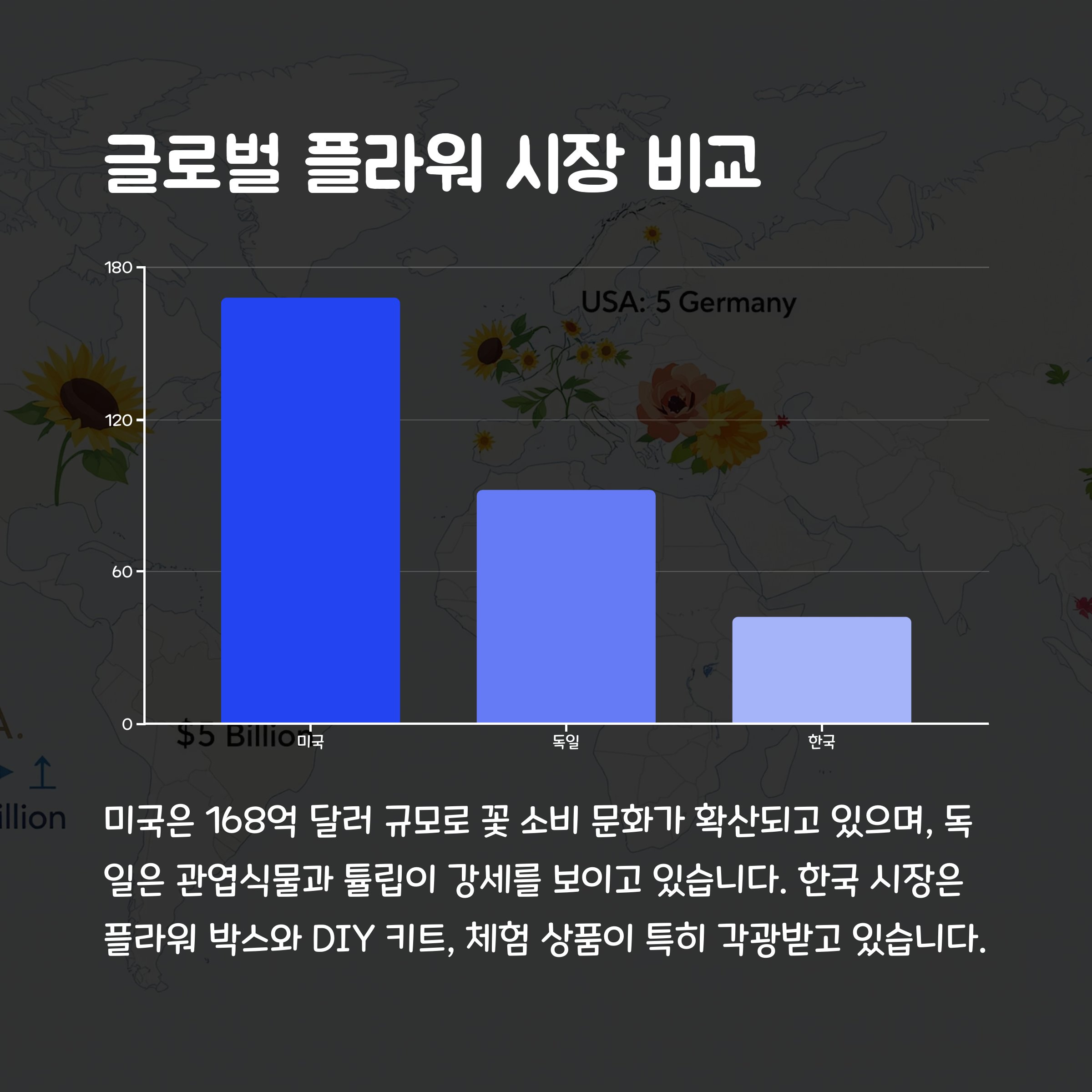 미국만 해도 온라인 꽃 시장 규모가 약 50억 달러에 달할 정도로 폭발적으로 성장 중이에요. 모바일 주문과 당일 배송이 큰 역할을 하고 있죠.