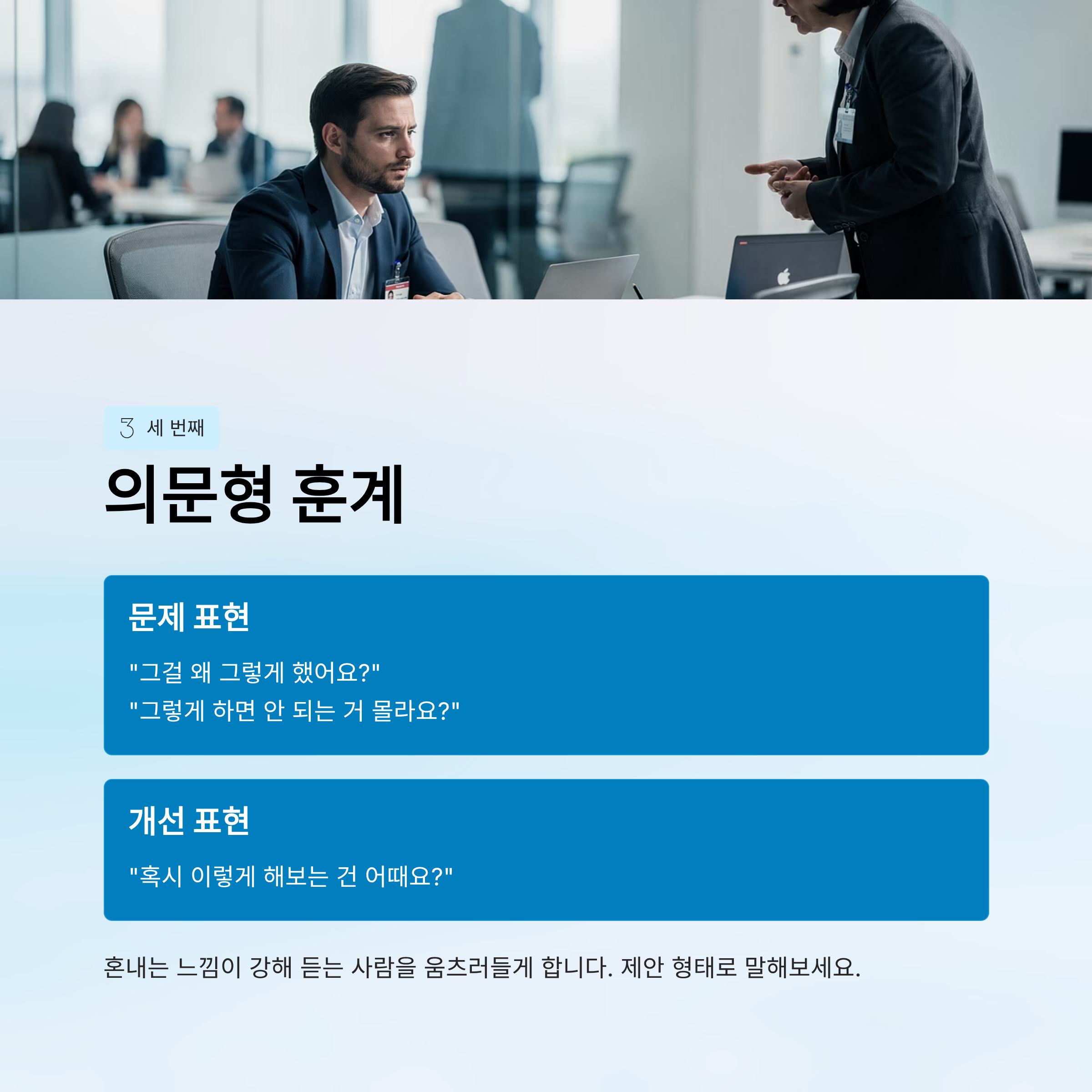 | 의문형 훈계 | "혹시 이런 방식은 어떠세요?" |