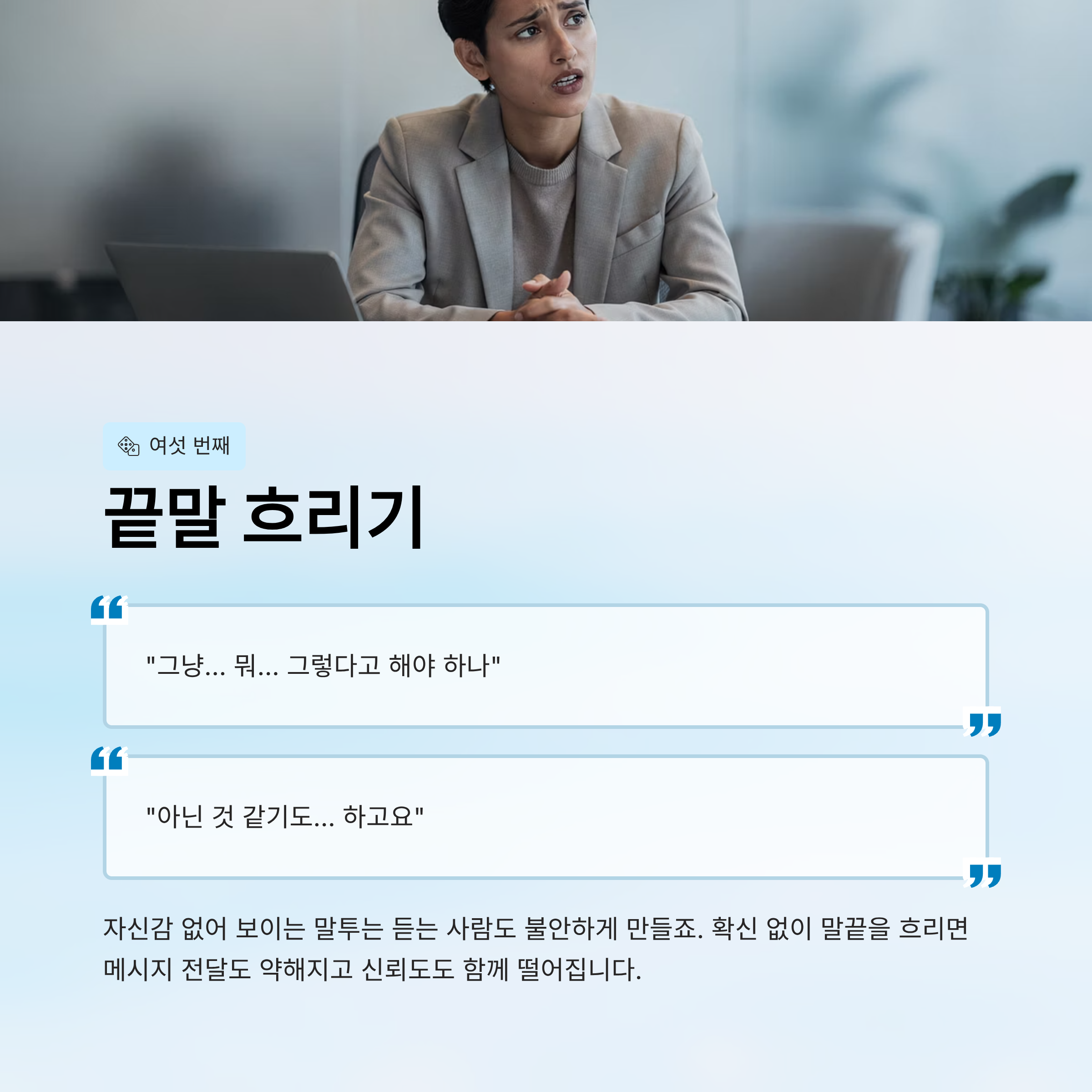 확신 없이 말끝을 흐리면 메시지 전달도 약해지고 신뢰도도 함께 떨어집니다.
