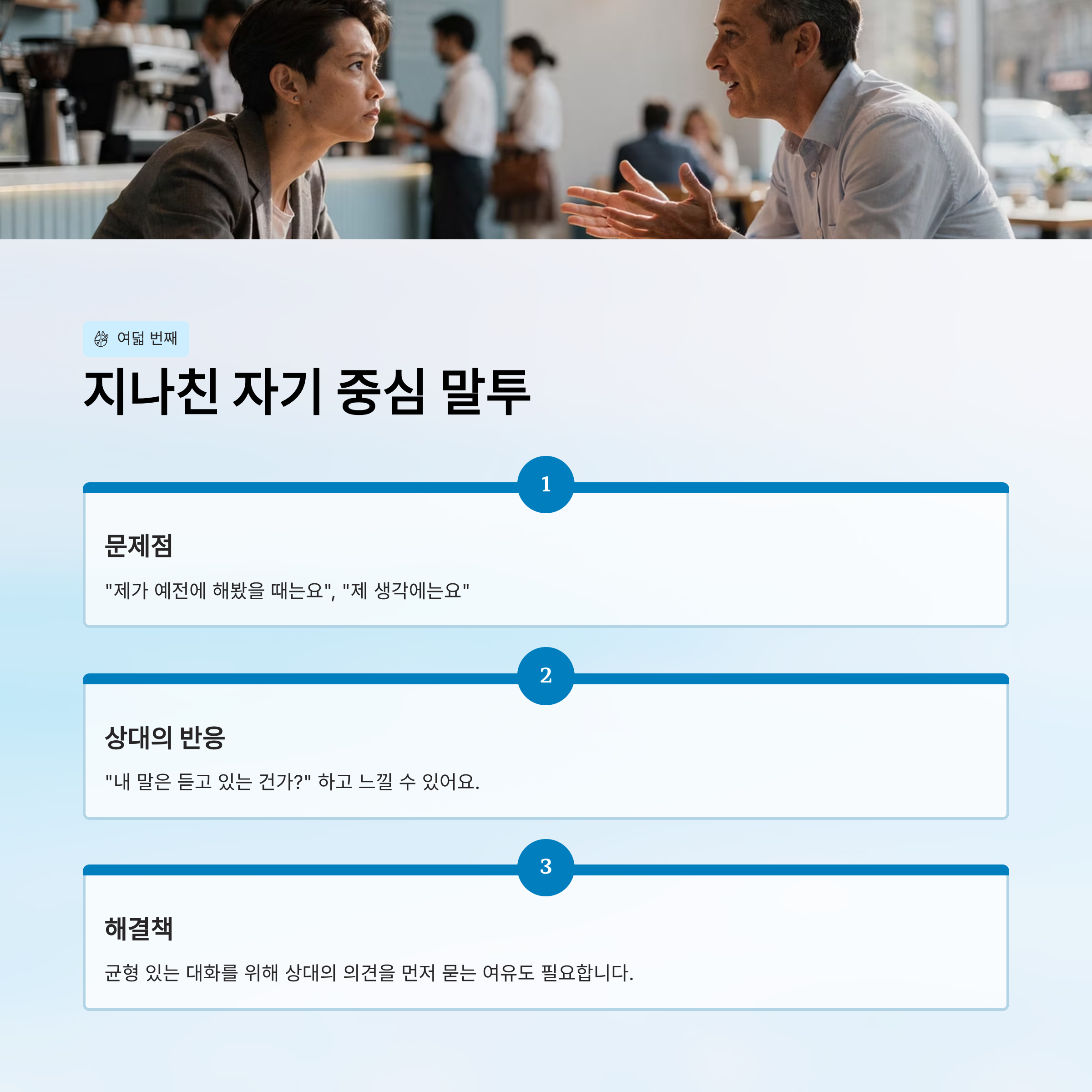 자기 의견을 말하는 건 좋지만, 대화 내내 자기 위주로 흐르면 듣는 사람은