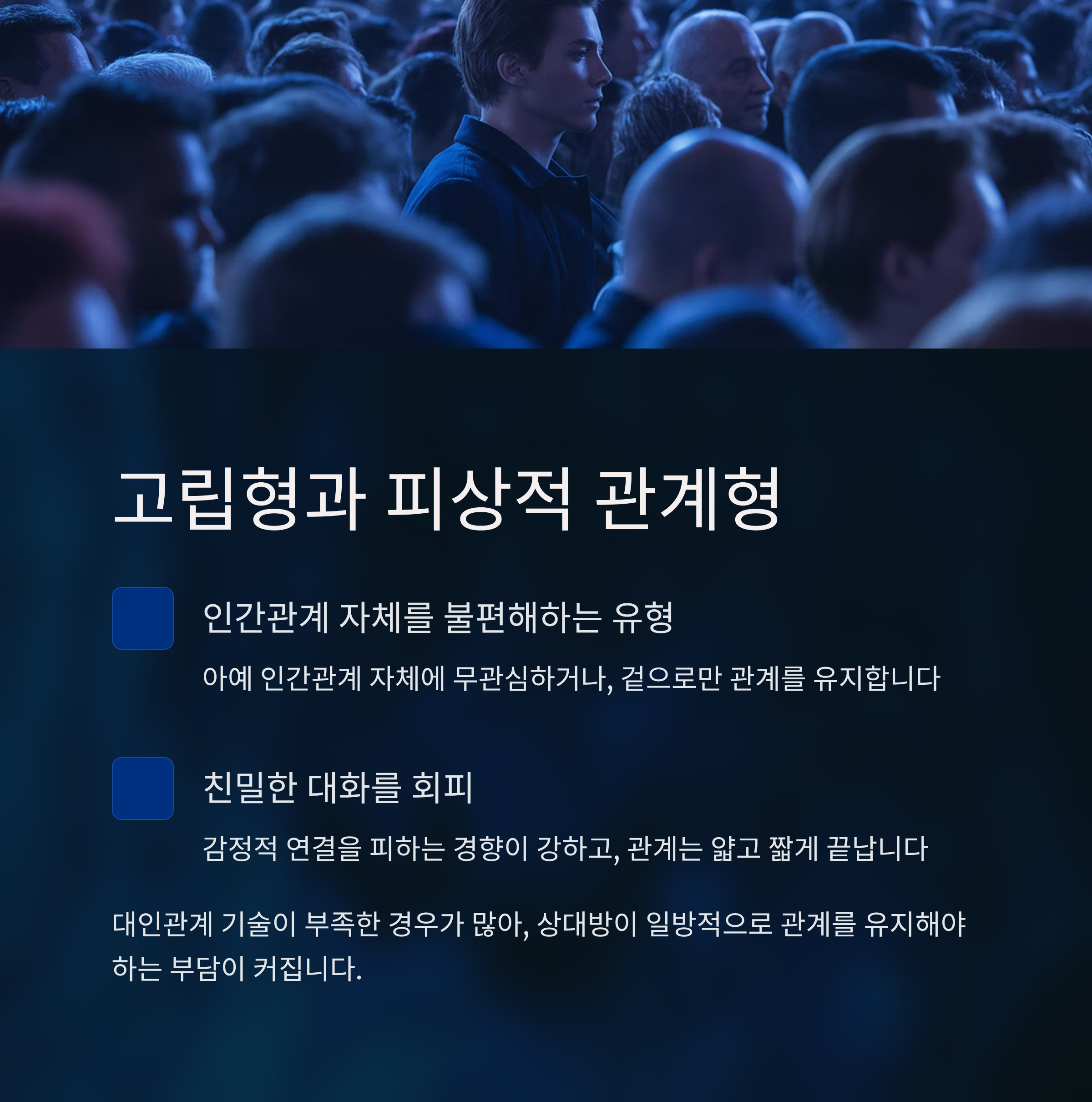 인간관계 자체를 불편해하는 고립형과 피상적 관계형