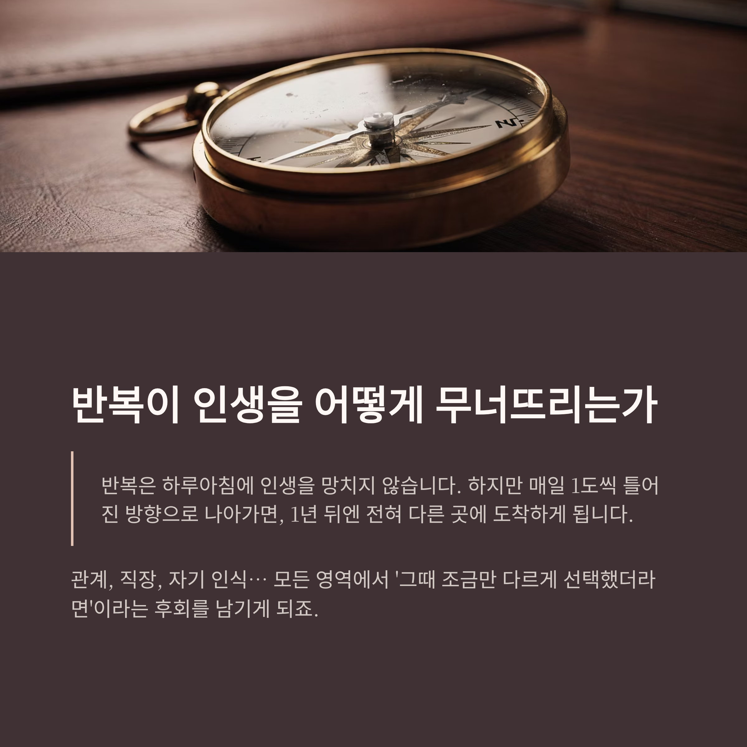 반복은 하루아침에 인생을 망치지 않습니다.