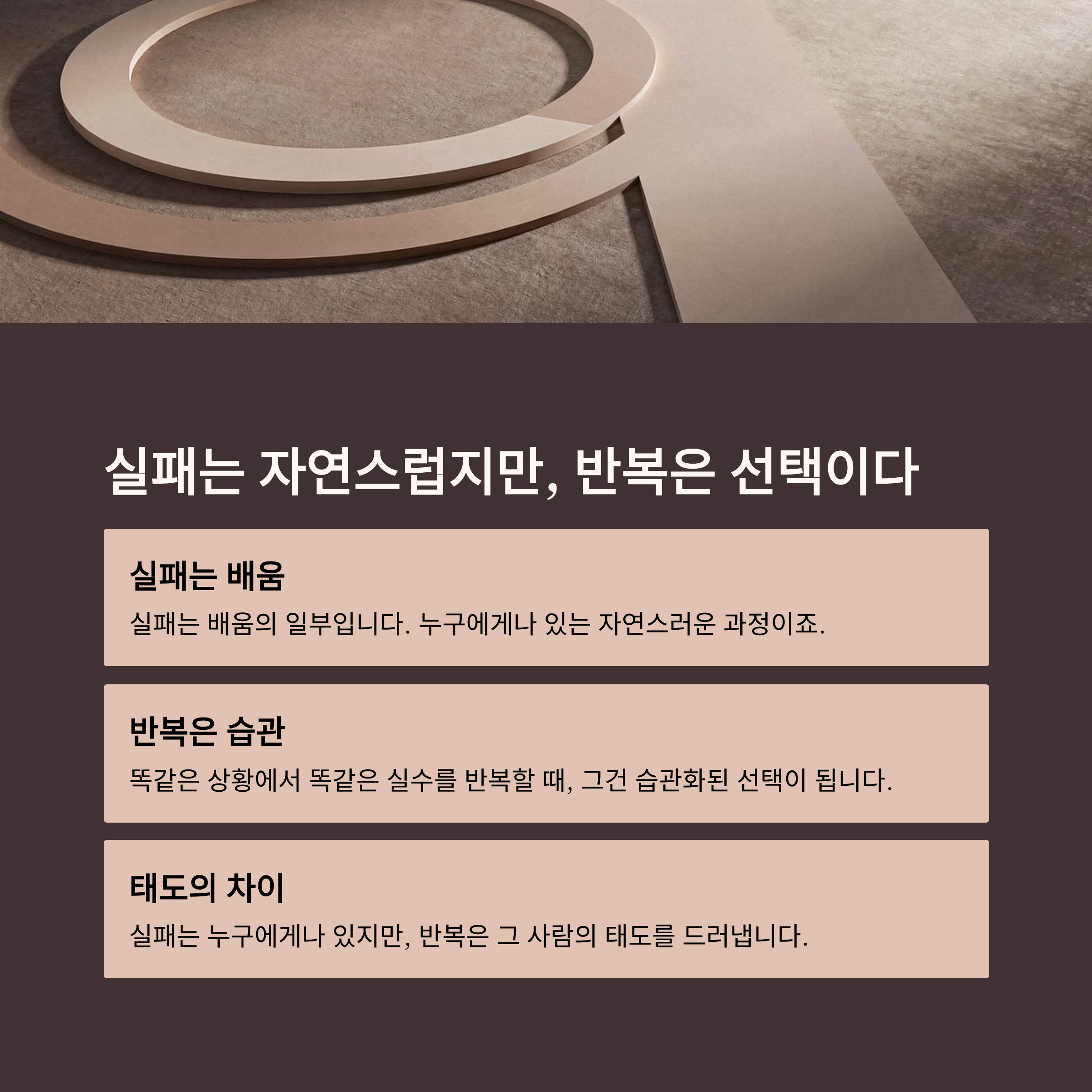 실패는 누구에게나 있지만, 반복은 그 사람의 '태도'를 드러냅니다.