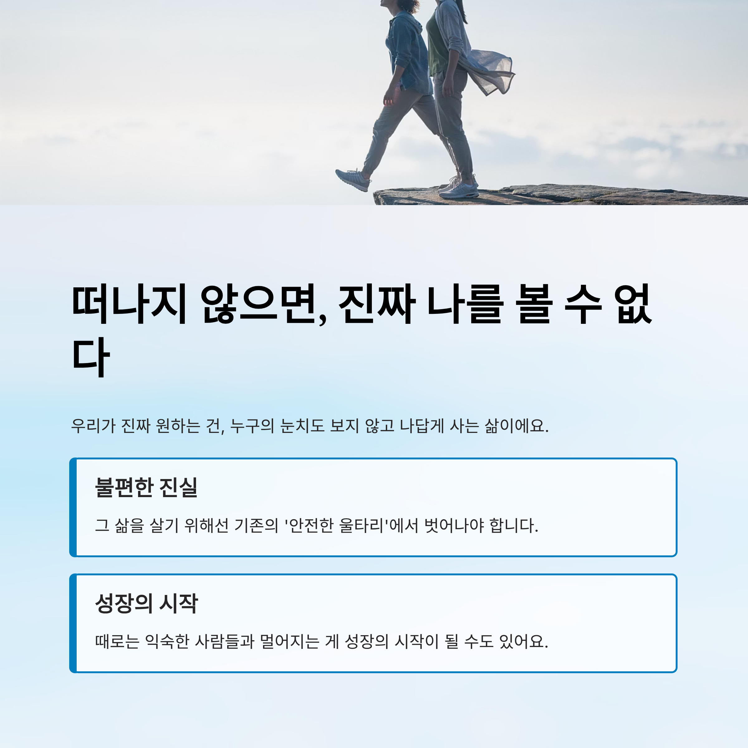 때로는 익숙한 사람들과 멀어지는 게 성장의 시작이 될 수도 있어요.