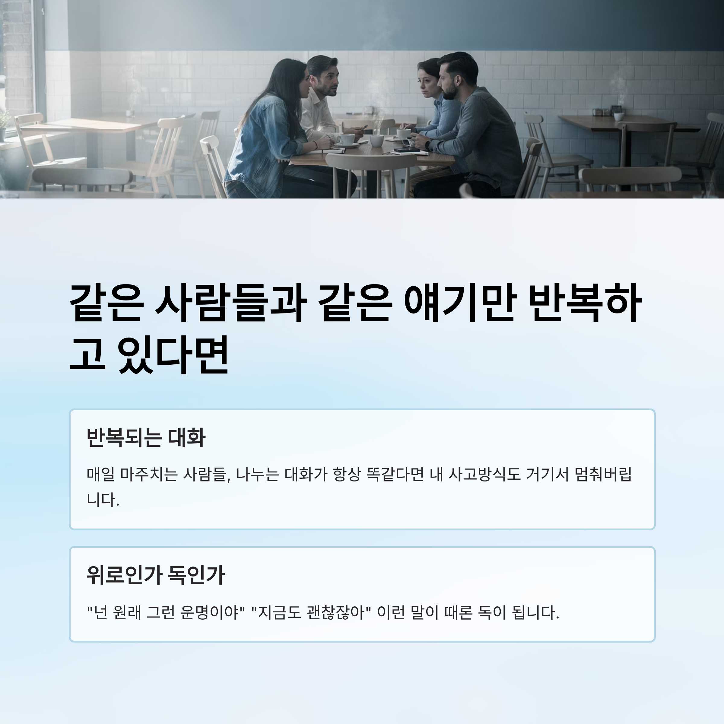 같은 사람들과 같은 얘기만 반복하고 있다면