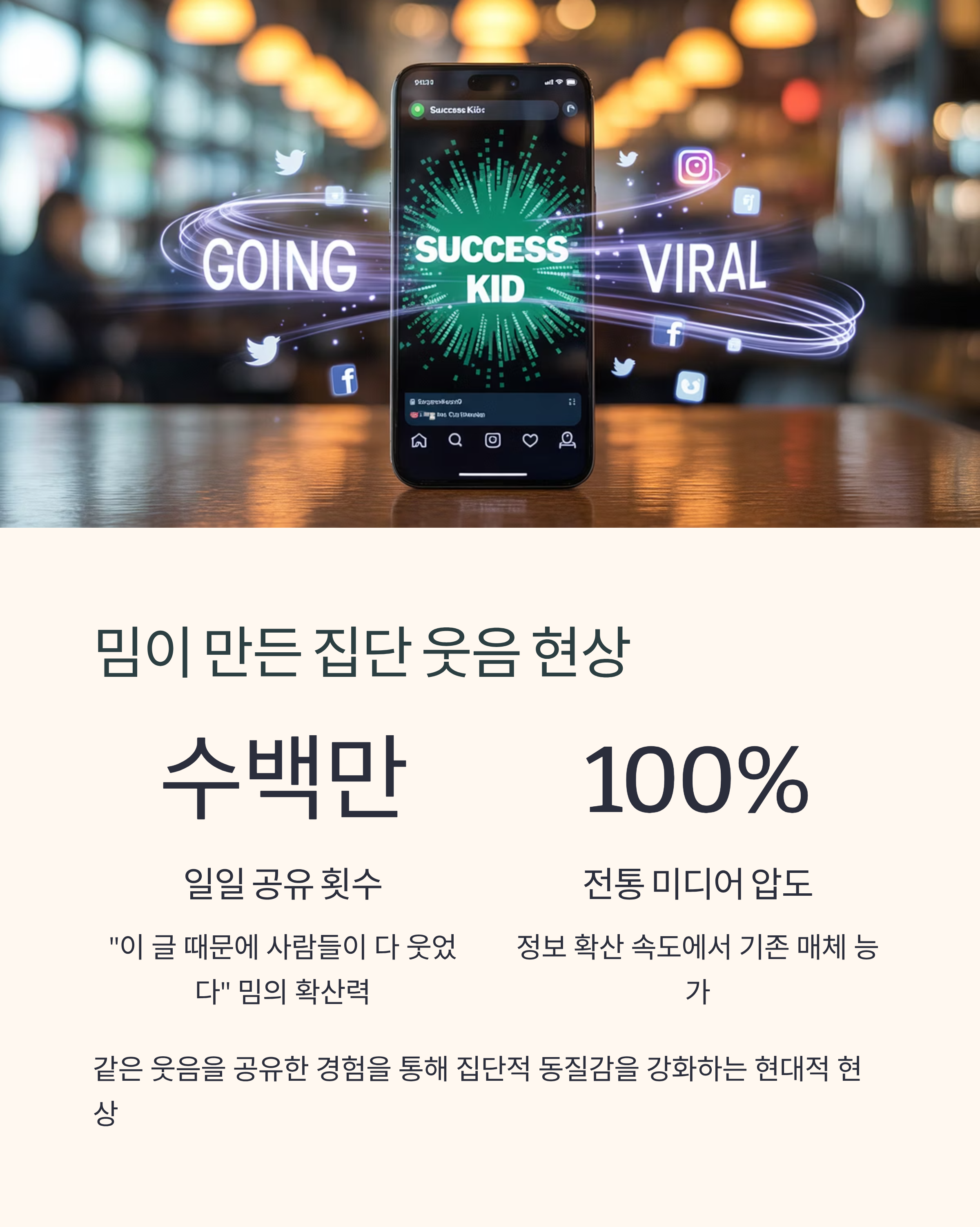 | 밈 확산 | 하루 100만 회 이상 | 집단 정체성 공유 |