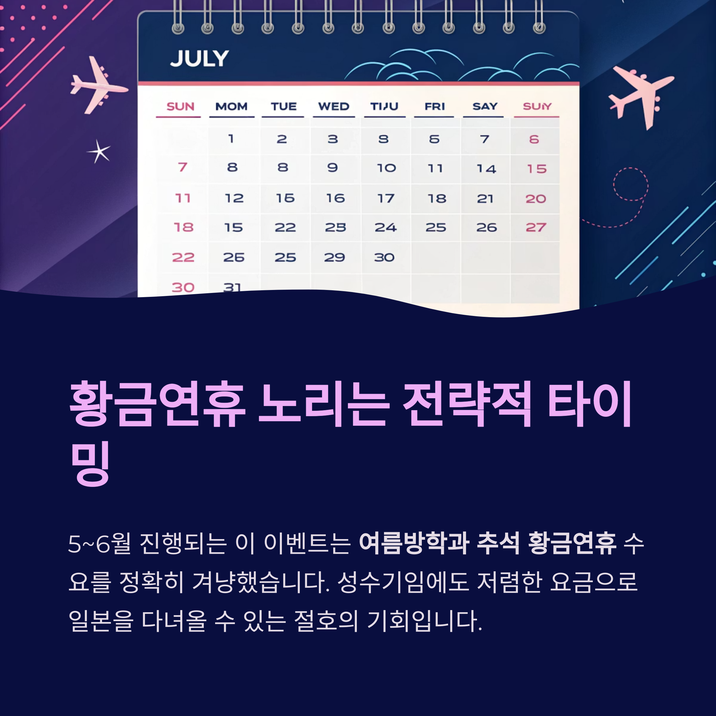 곧 다가올 여름방학과 추석 황금연휴를 노리는 수요를 정확히 겨냥하고 있습니다.