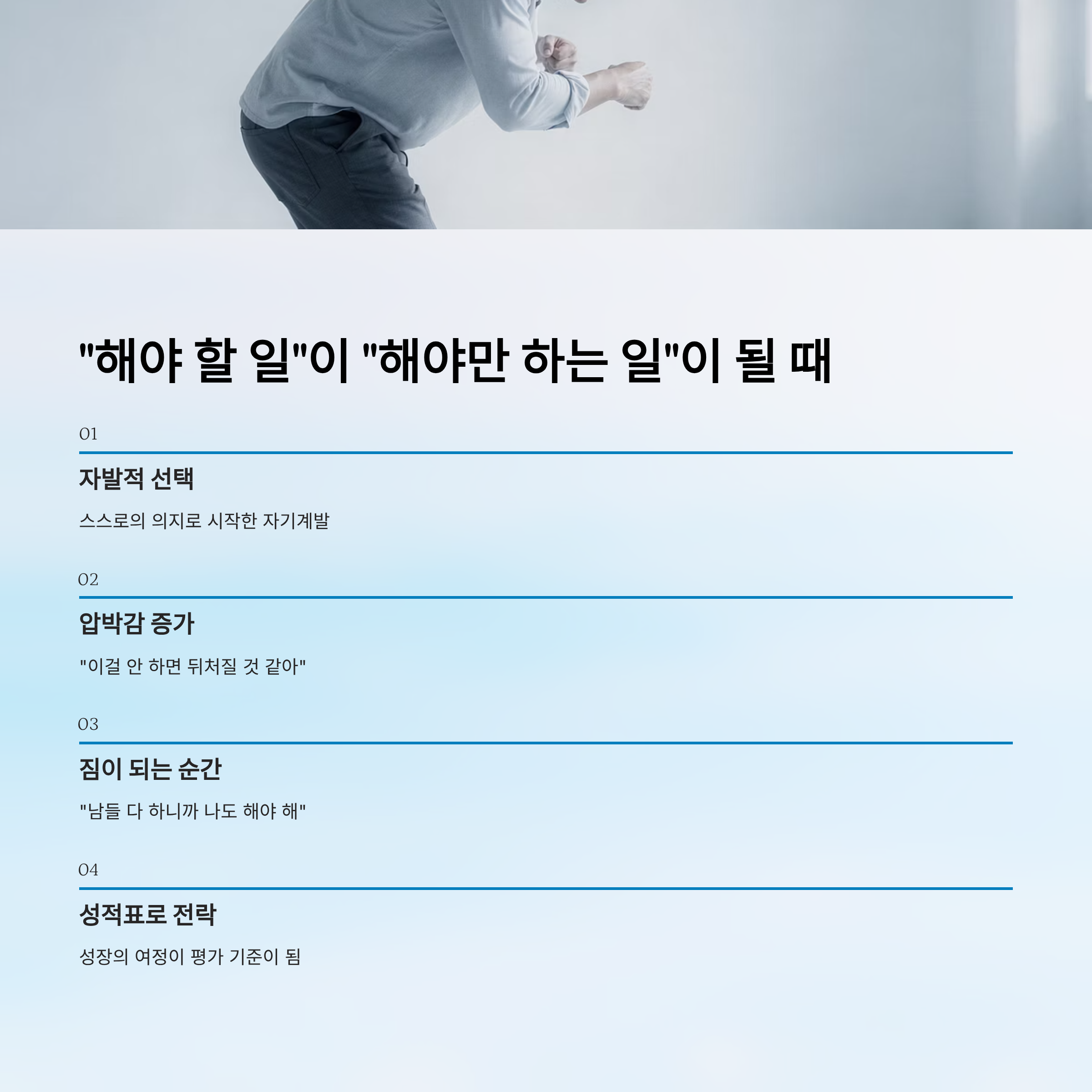 자기계발은 스스로의 의지로 선택해야 합니다. 하지만 어느 순간부터