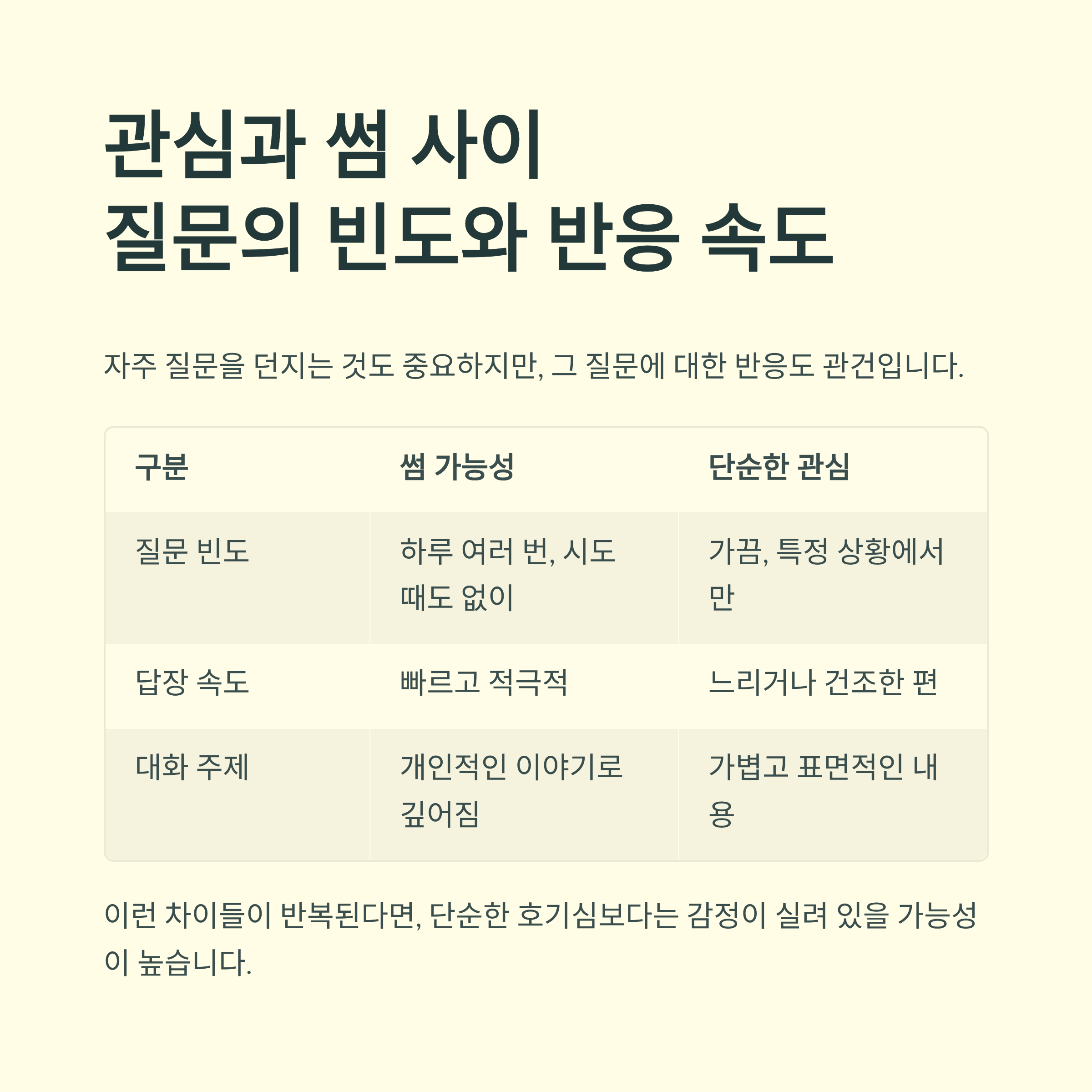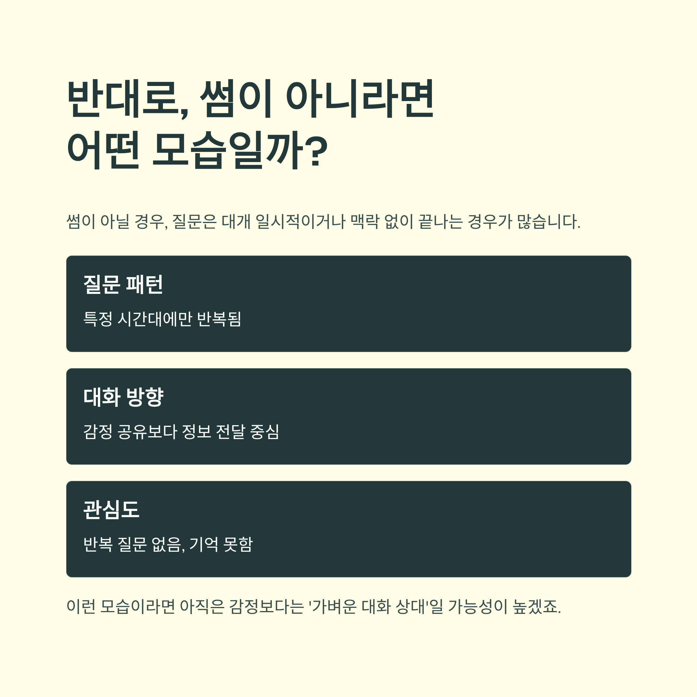 썸이 아닐 경우, 질문은 대개 일시적이거나 맥락 없이 끝나는 경우가 많습니다.