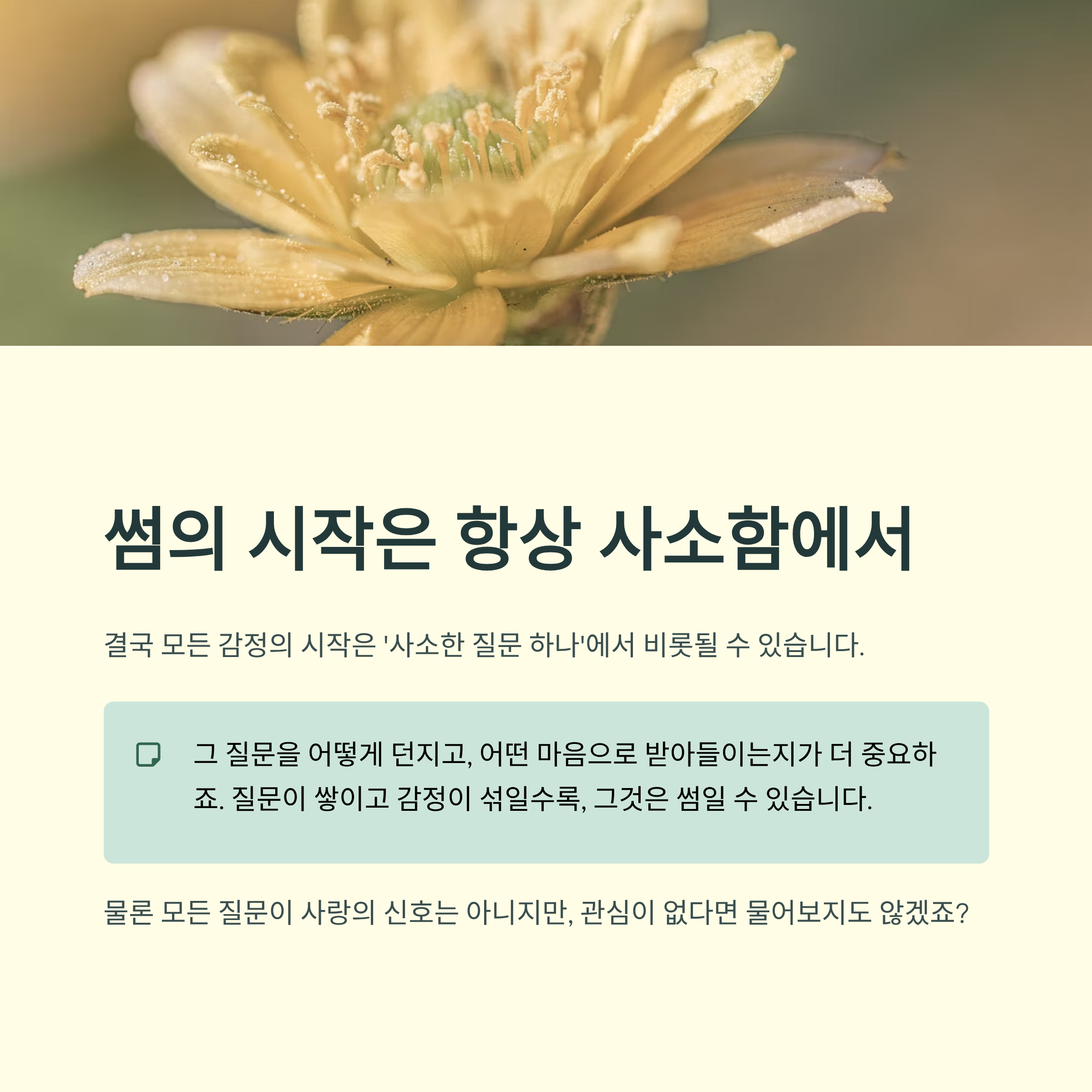 결국 모든 감정의 시작은 '사소한 질문 하나'에서 비롯될 수 있습니다.