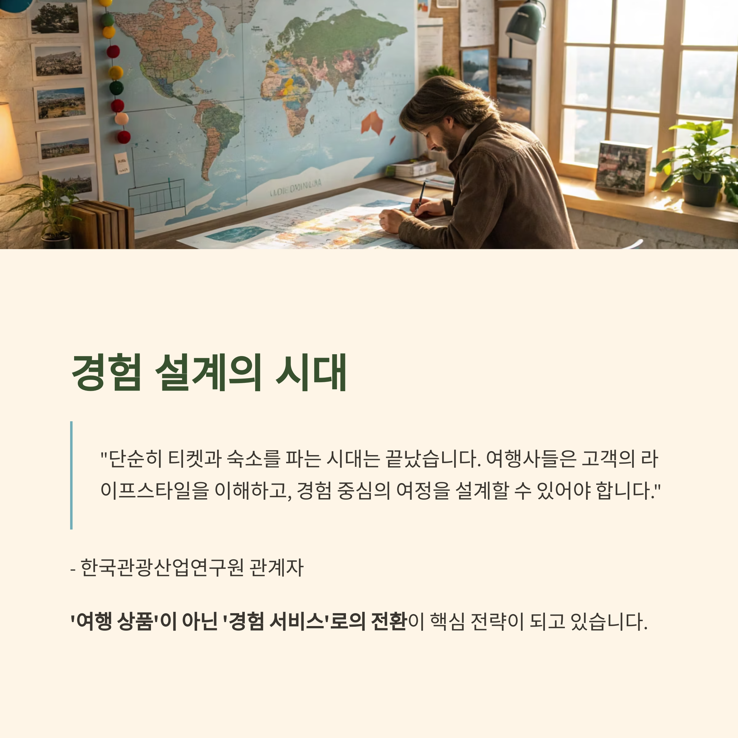 "이제 여행사는 중개자가 아니라 설계자가 되어야 살아남는다"는 목소리도 높아지고 있습니다.