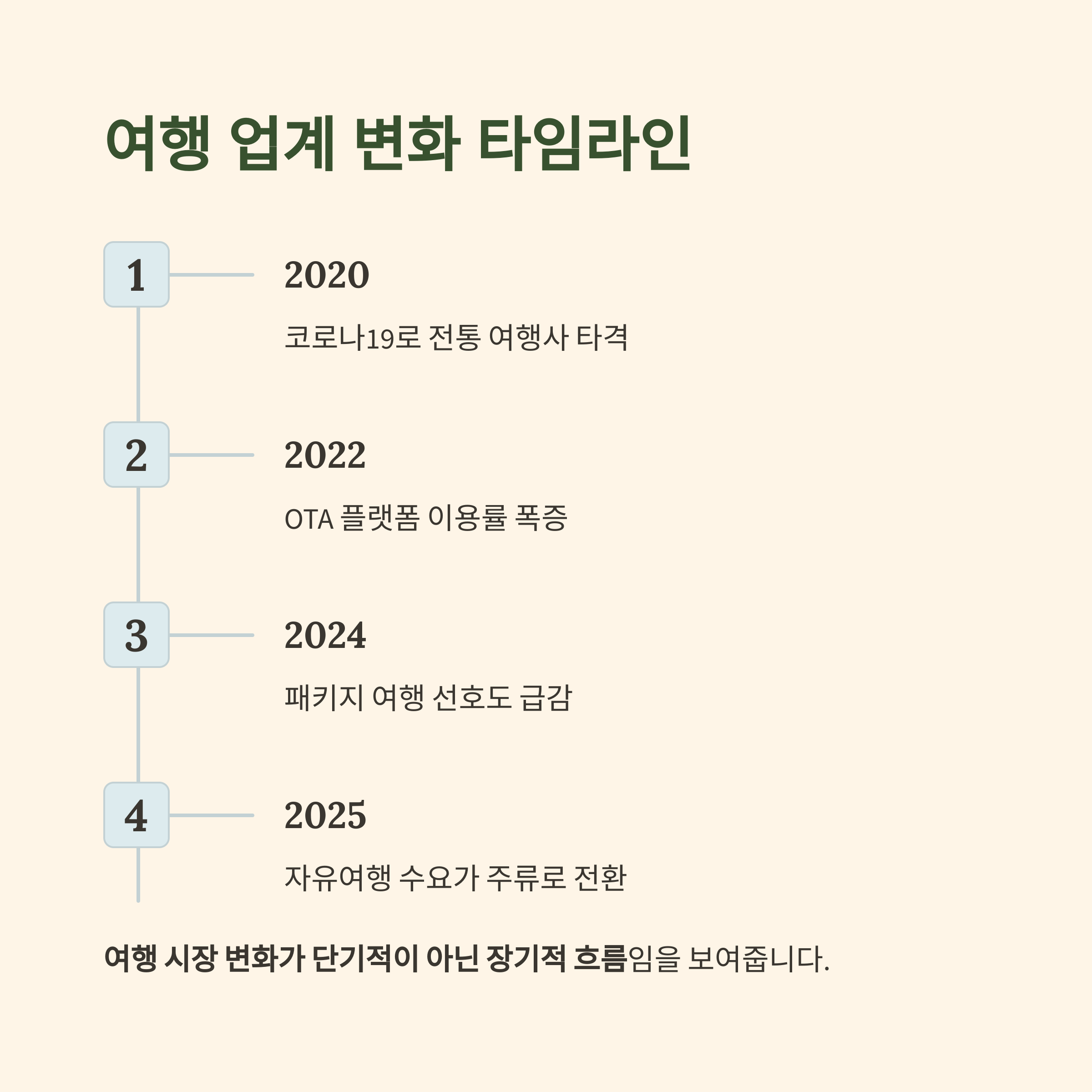 이 타임라인은 여행 시장 변화가 단기적이 아닌 장기적 흐름임을 보여줍니다.