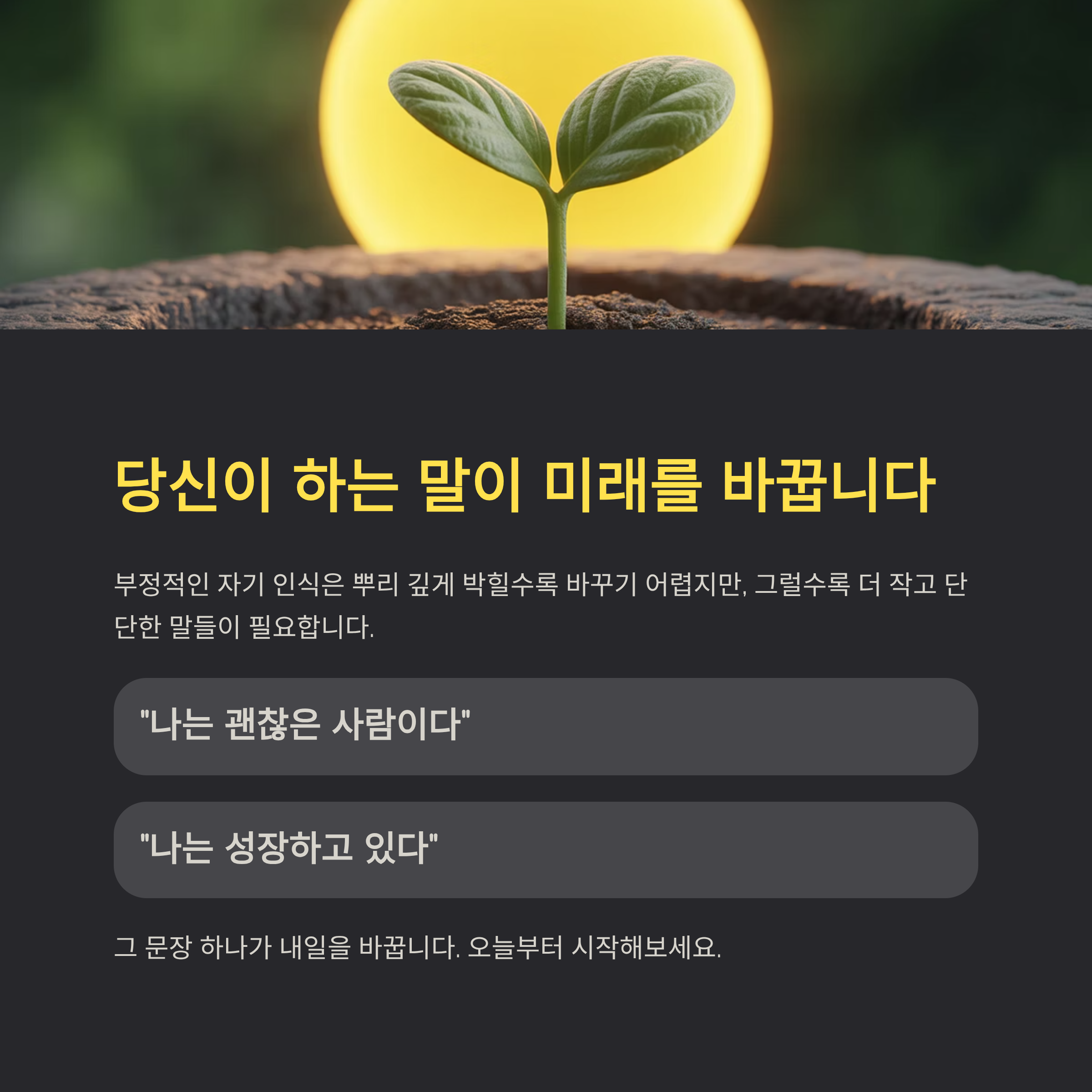 그 문장 하나가 내일을 바꿉니다. 오늘부터 시작해보세요.