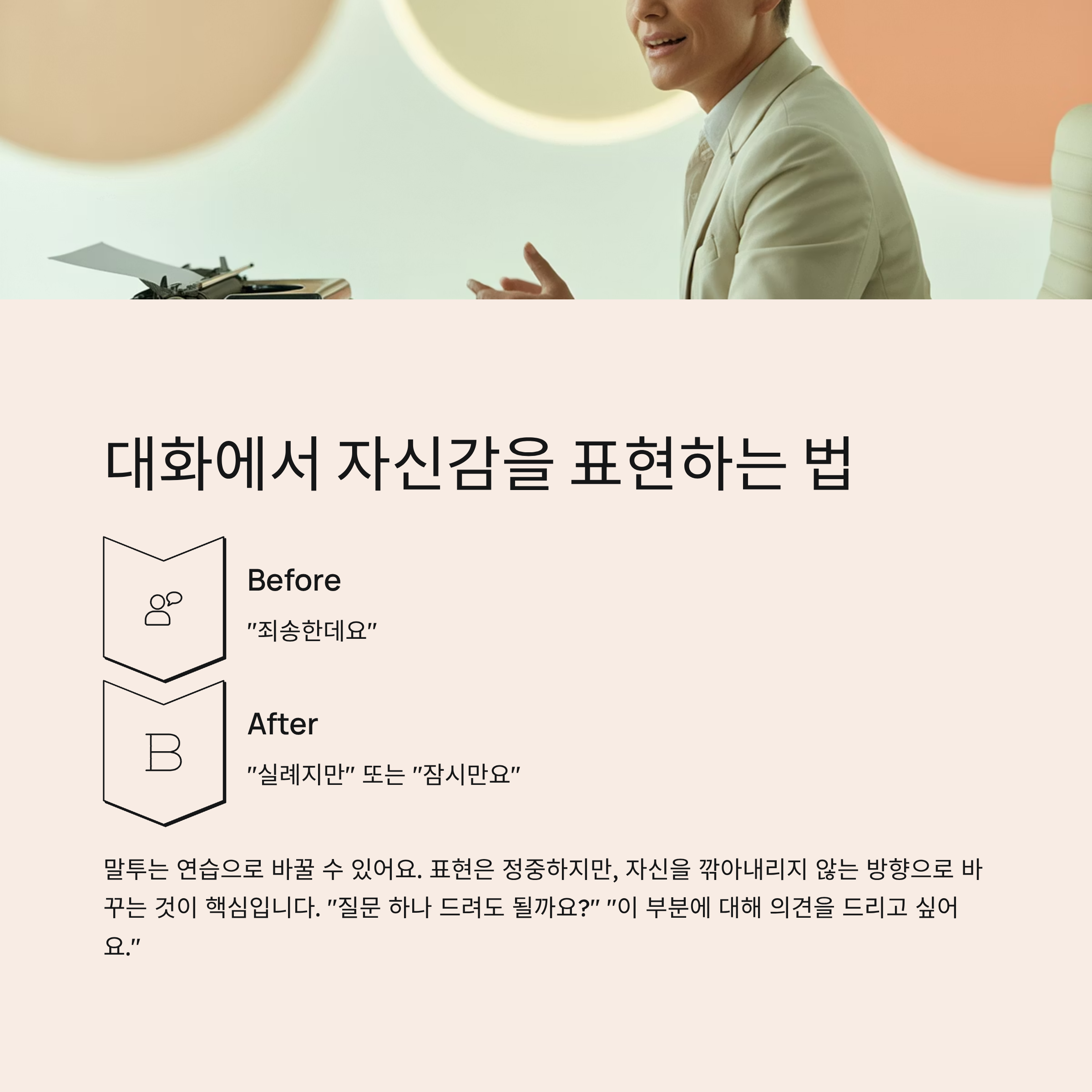 표현은 정중하지만, 자신을 깎아내리지 않는 방향으로 바꾸는 것이 핵심입니다.