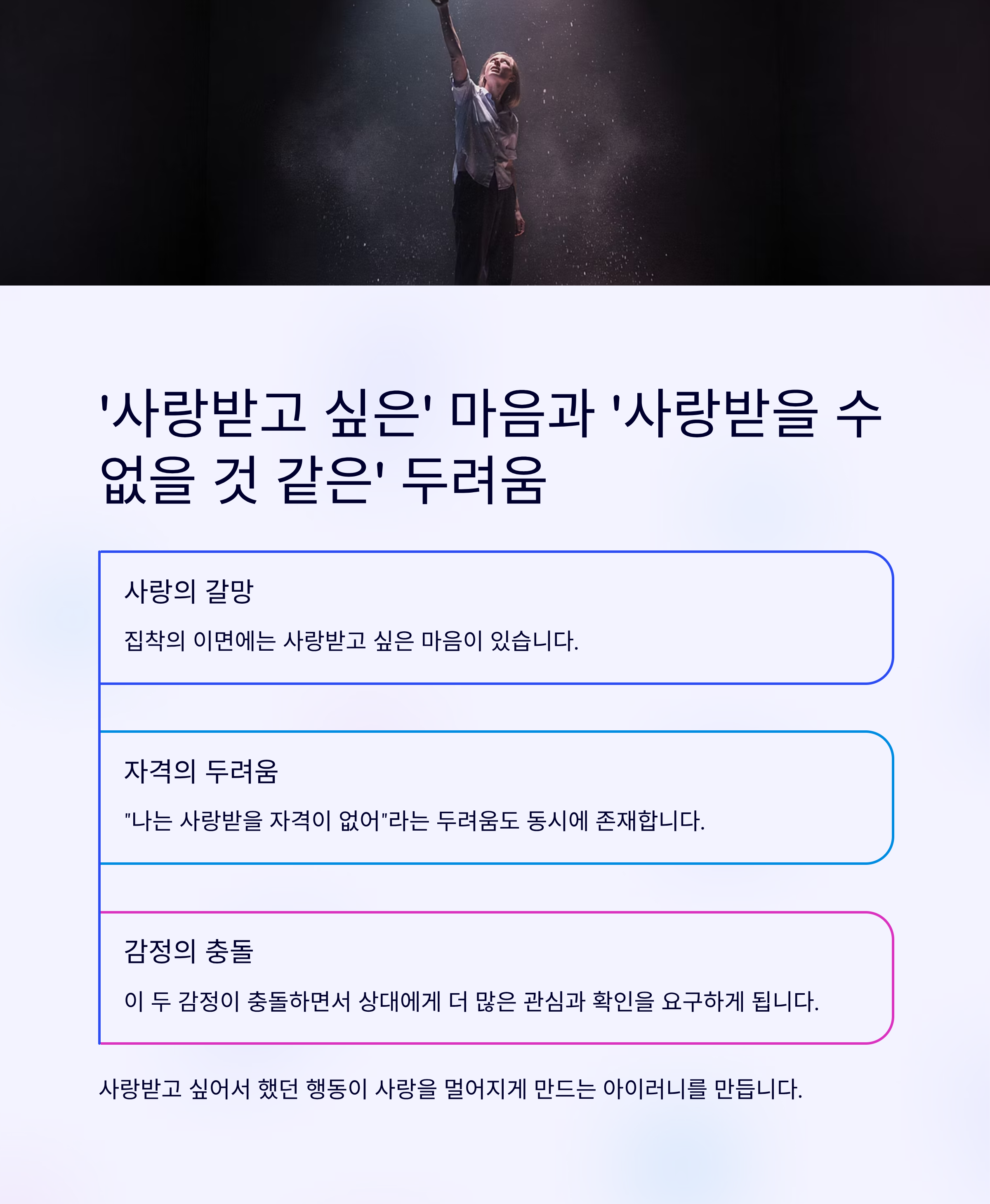 하지만 동시에, "나는 사랑받을 자격이 없어"라는 두려움도 있죠.