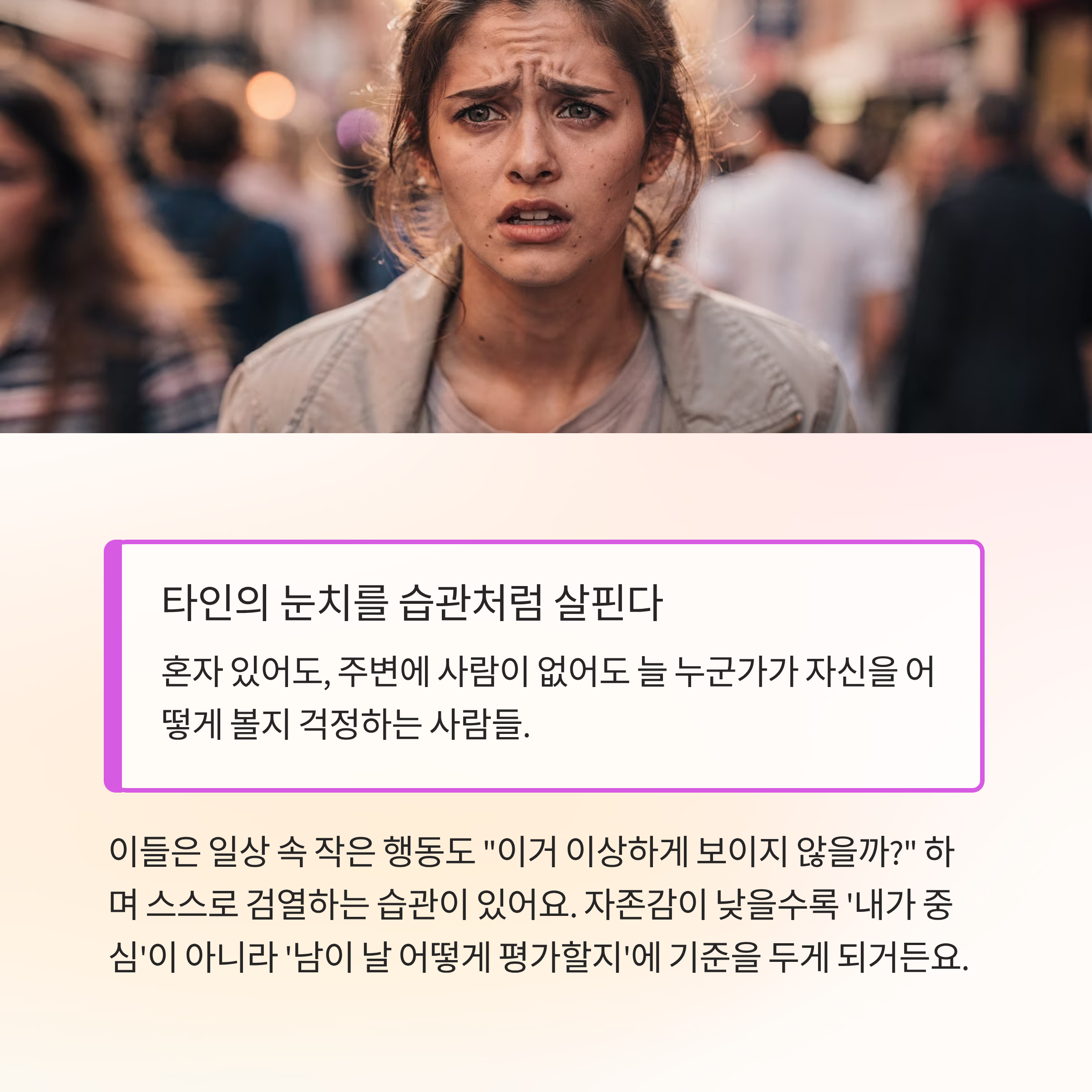 이들은 일상 속 작은 행동도 "이거 이상하게 보이지 않을까?" 하며