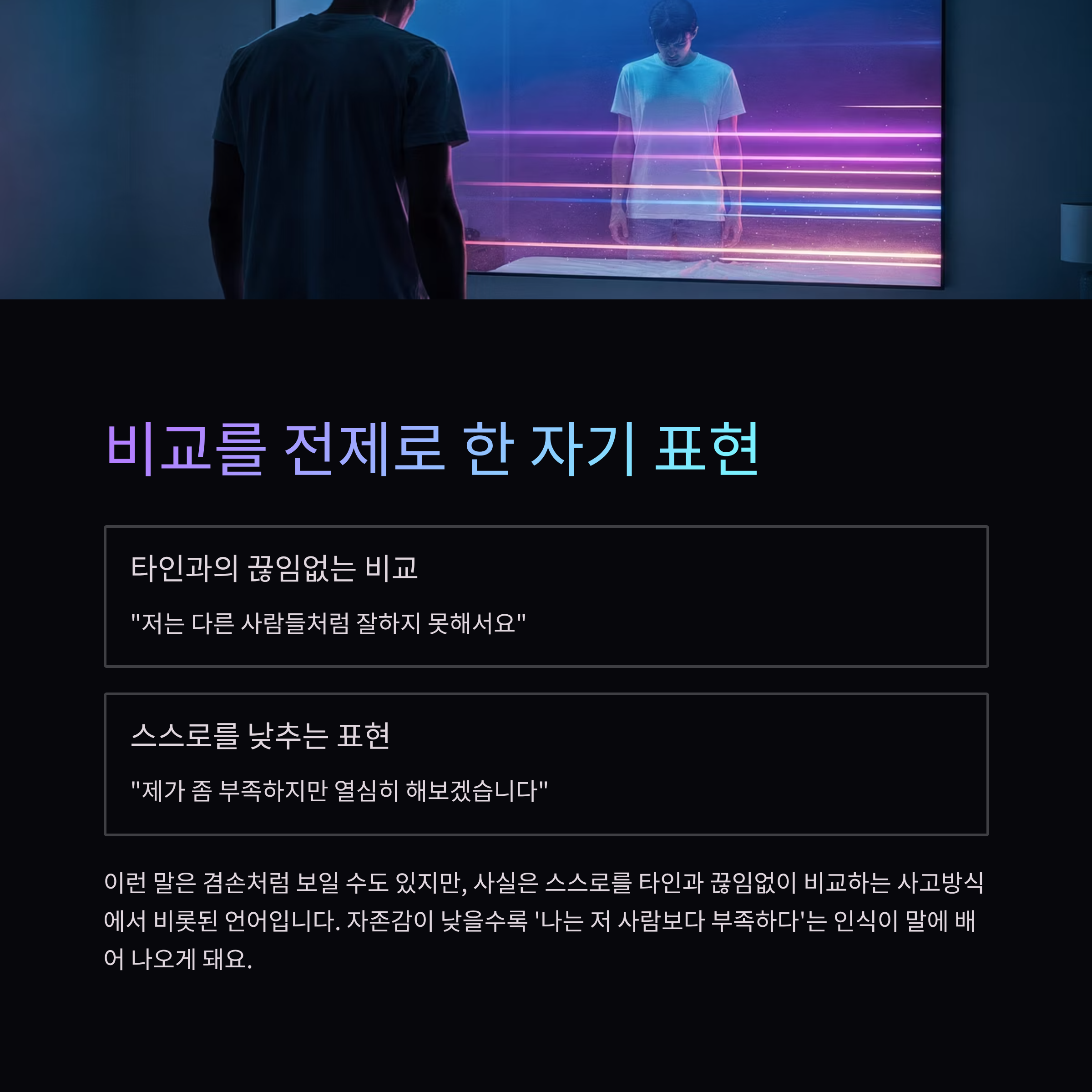 이런 말은 겸손처럼 보일 수도 있지만, 사실은 스스로를 타인과 끊임없이 비교하는 사고방식에서 비롯된 언어입니다.