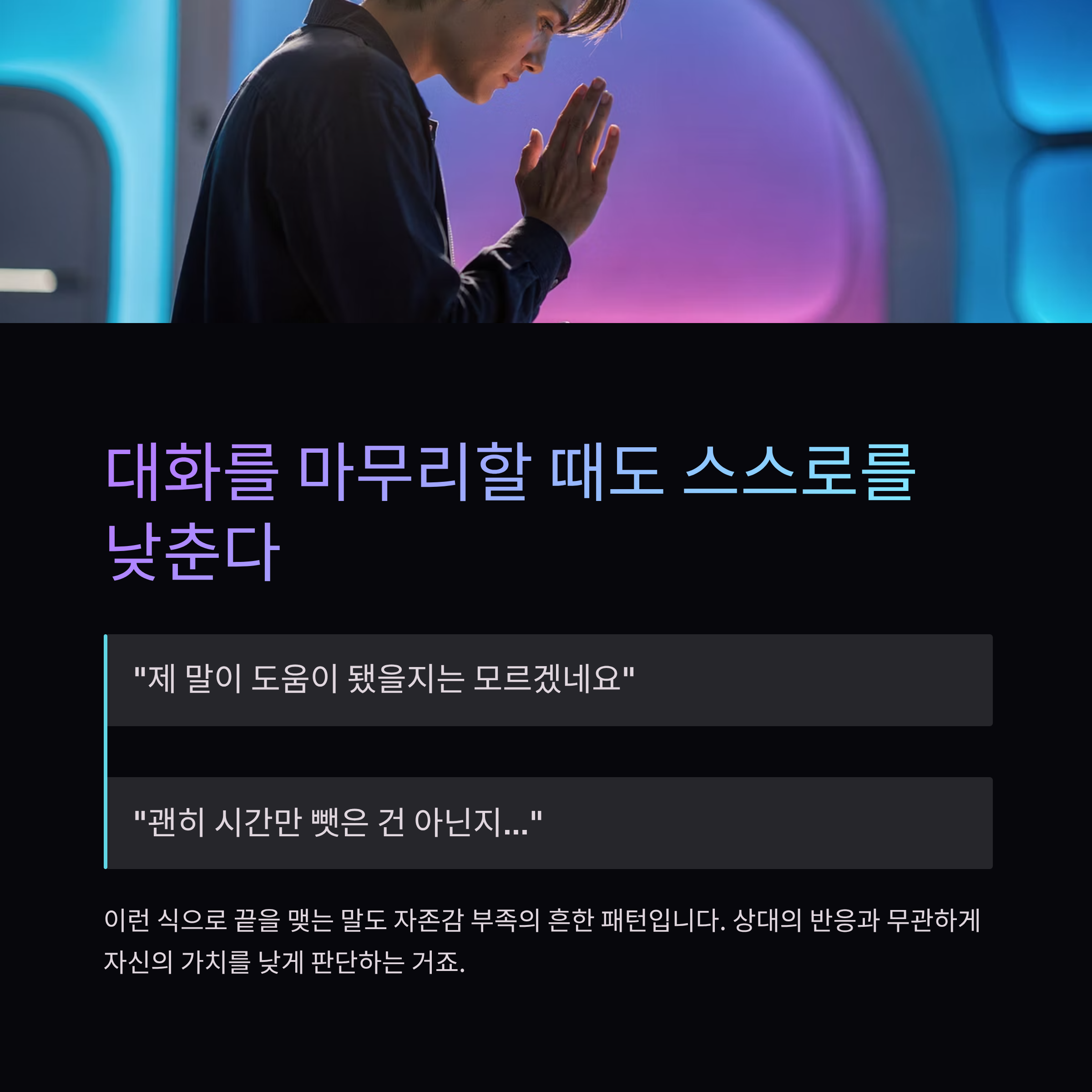 이런 식으로 끝을 맺는 말도 자존감 부족의 흔한 패턴입니다.