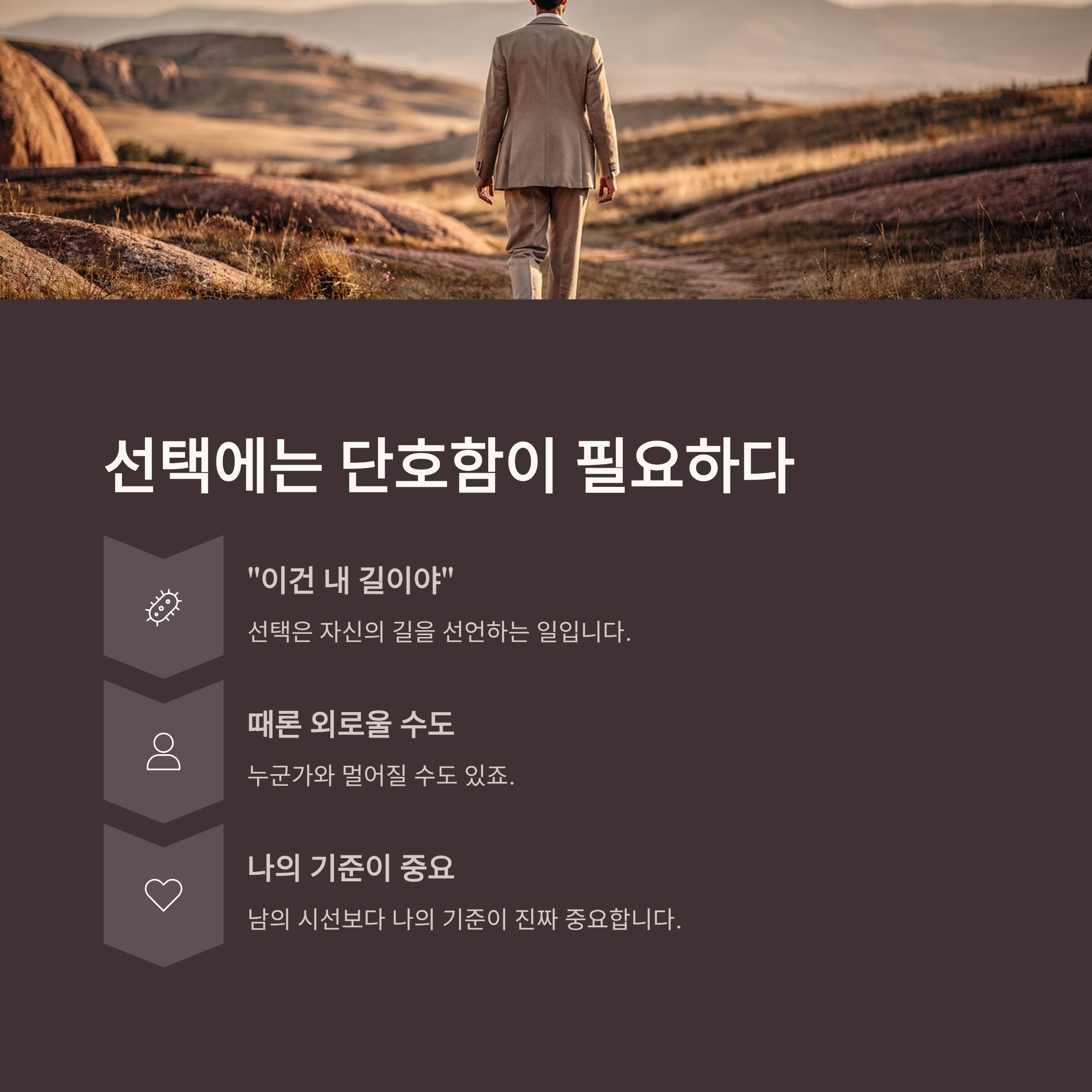 그 대신 묵묵히 선택하고, 행동하죠.