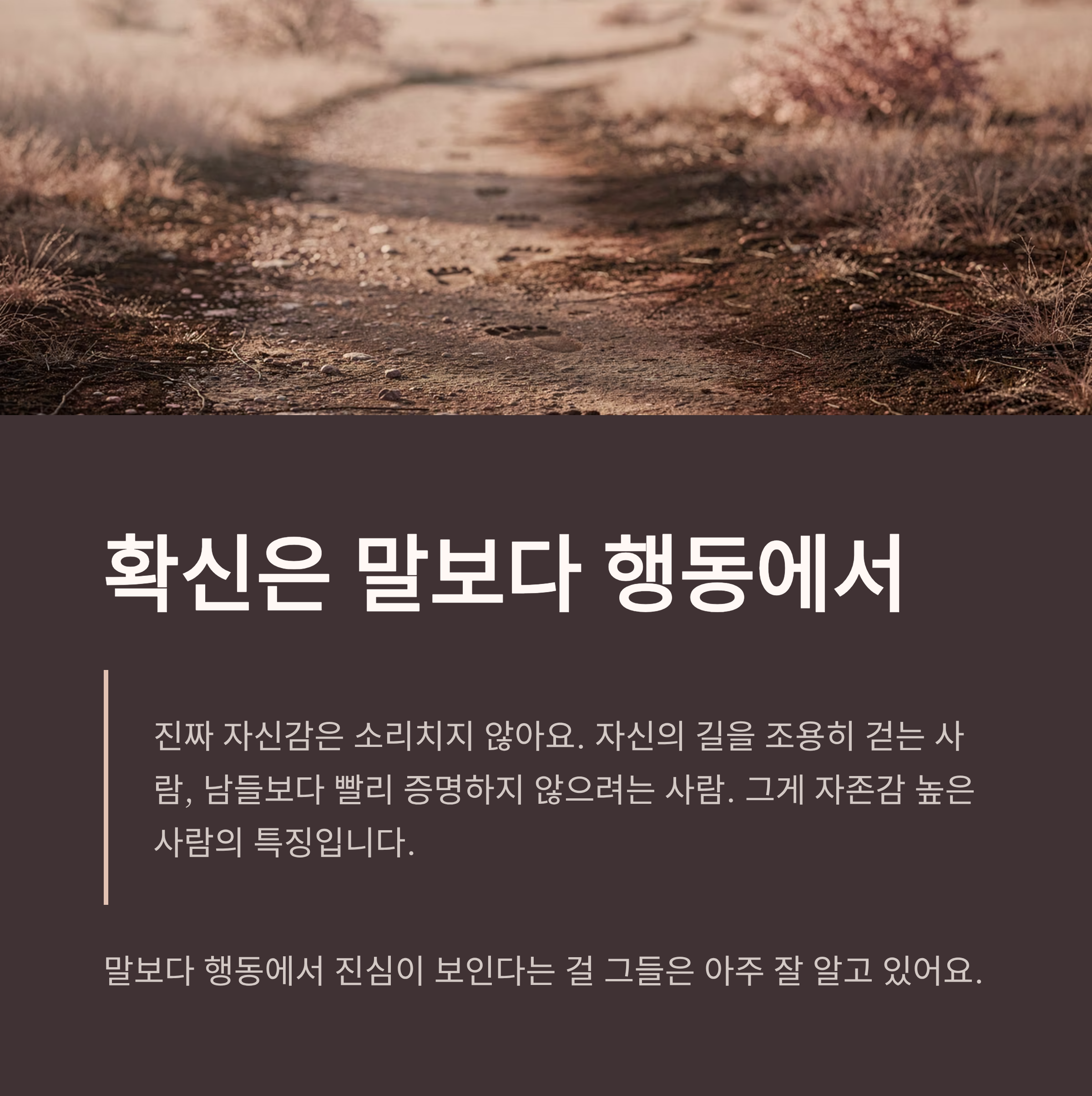 자신의 길을 조용히 걷는 사람, 남들보다 빨리 증명하지 않으려는 사람. 그게 자존감 높은 사람의 특징입니다.