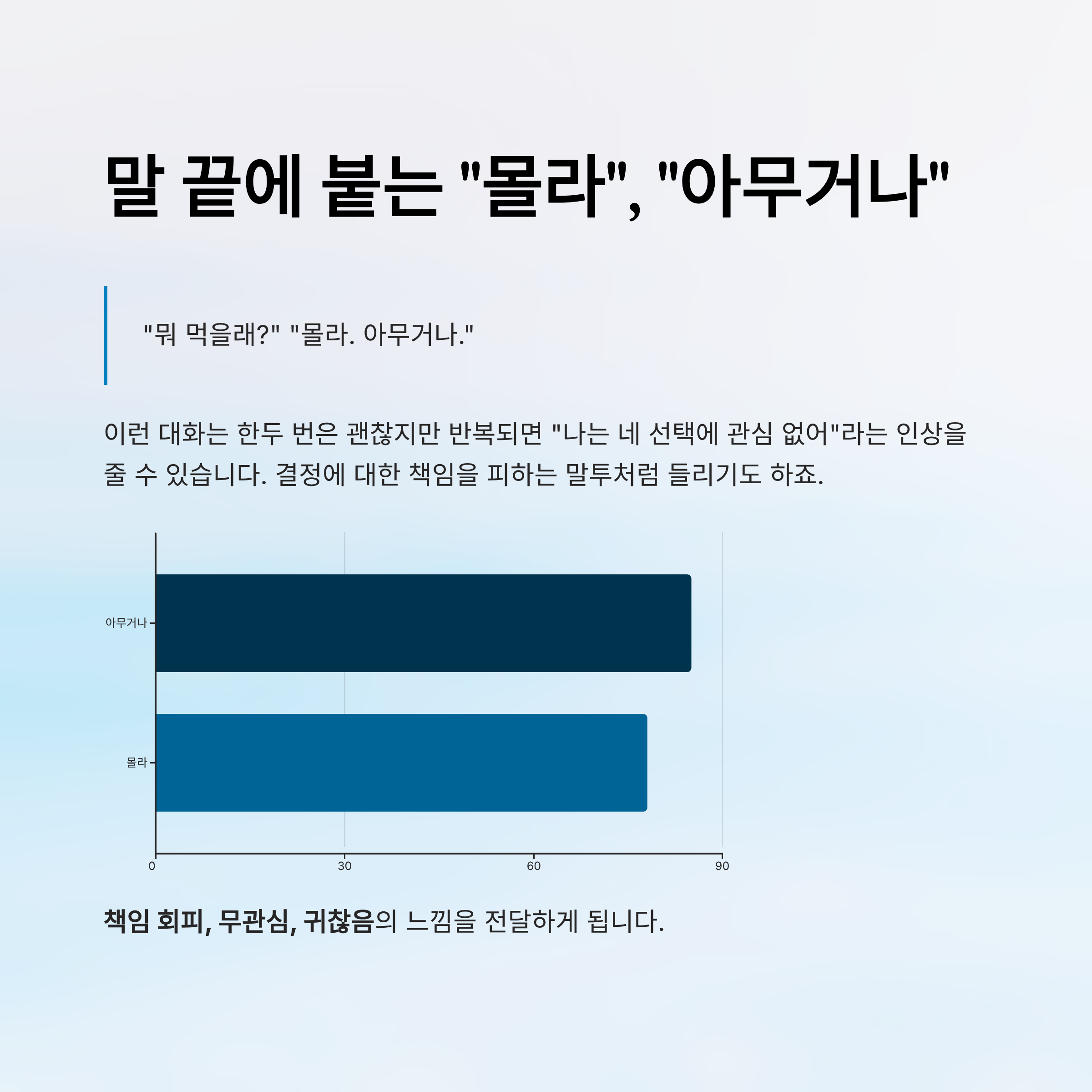 자꾸 말 끝에 붙는 "몰라", "아무거나"