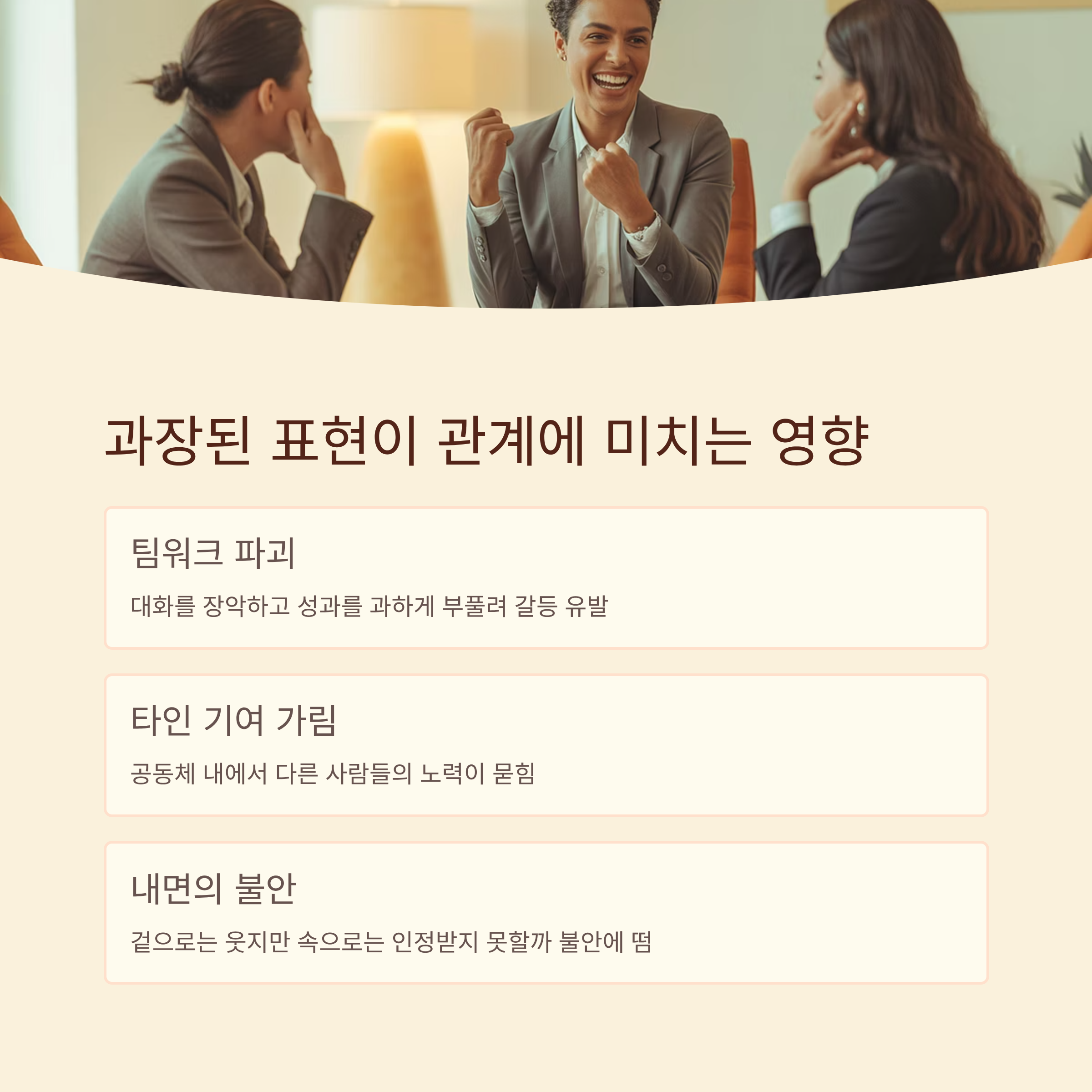 "말은 잘했는데, 결과는 별로야"라는 피드백을 들을수록 자신을 증명하려는 압박은 커지고, 이는 다시 과장된 표현으로 이어지는 악순환을 만듭니다.