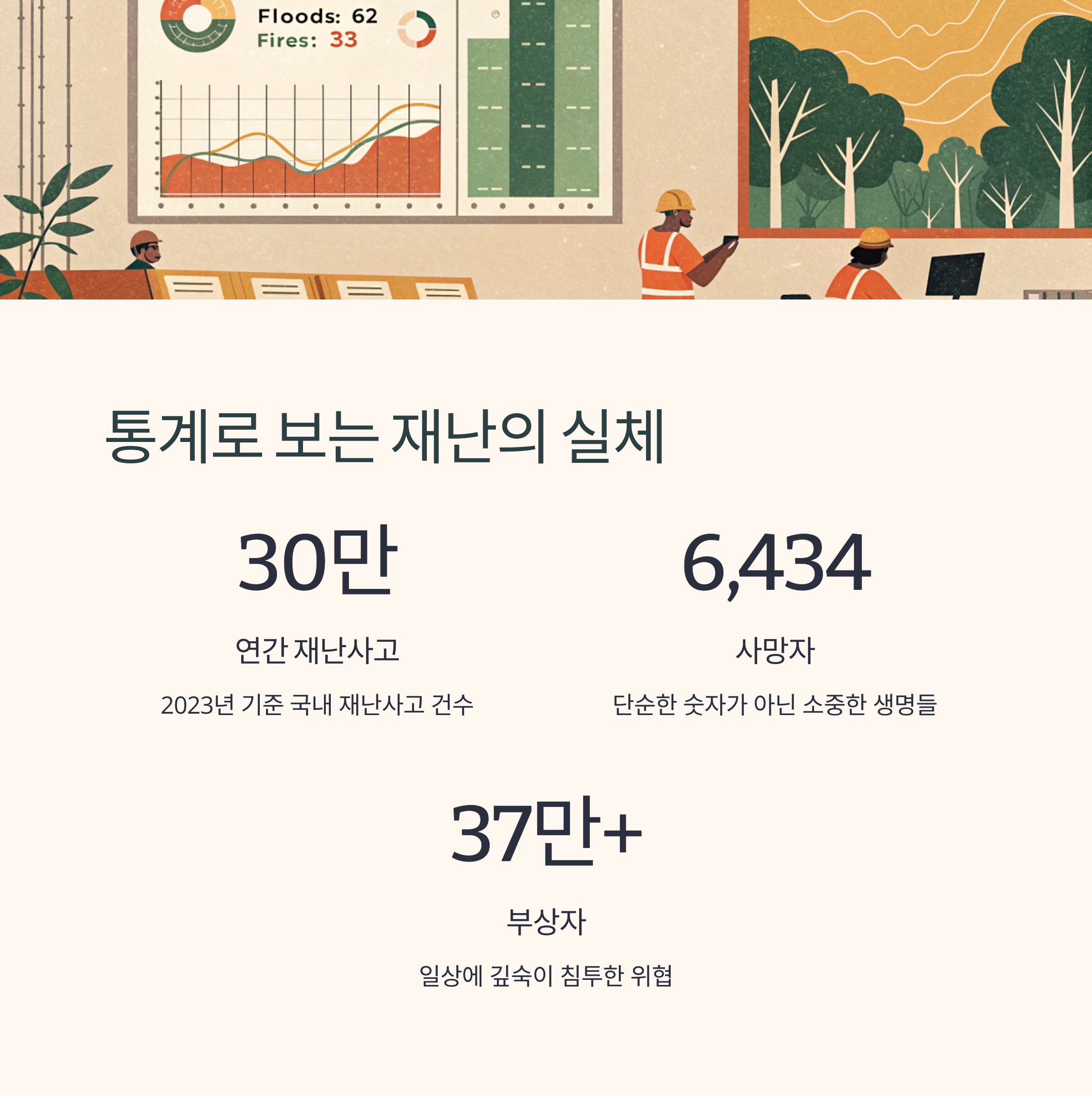 2023년 기준 국내 재난사고는 연간 30만 건에 달하며,