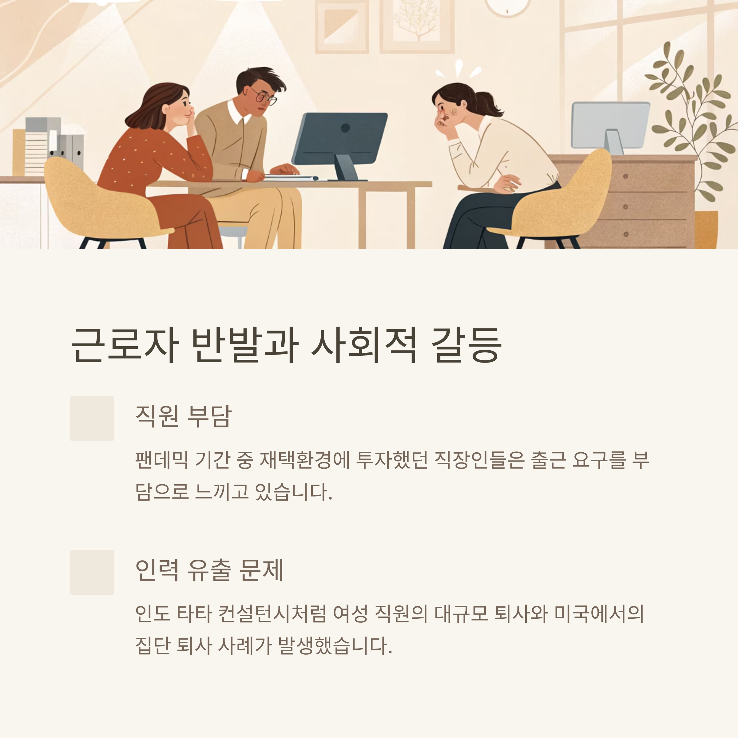 근로자 반발과 사회적 갈등도 여전히 존재합니다
