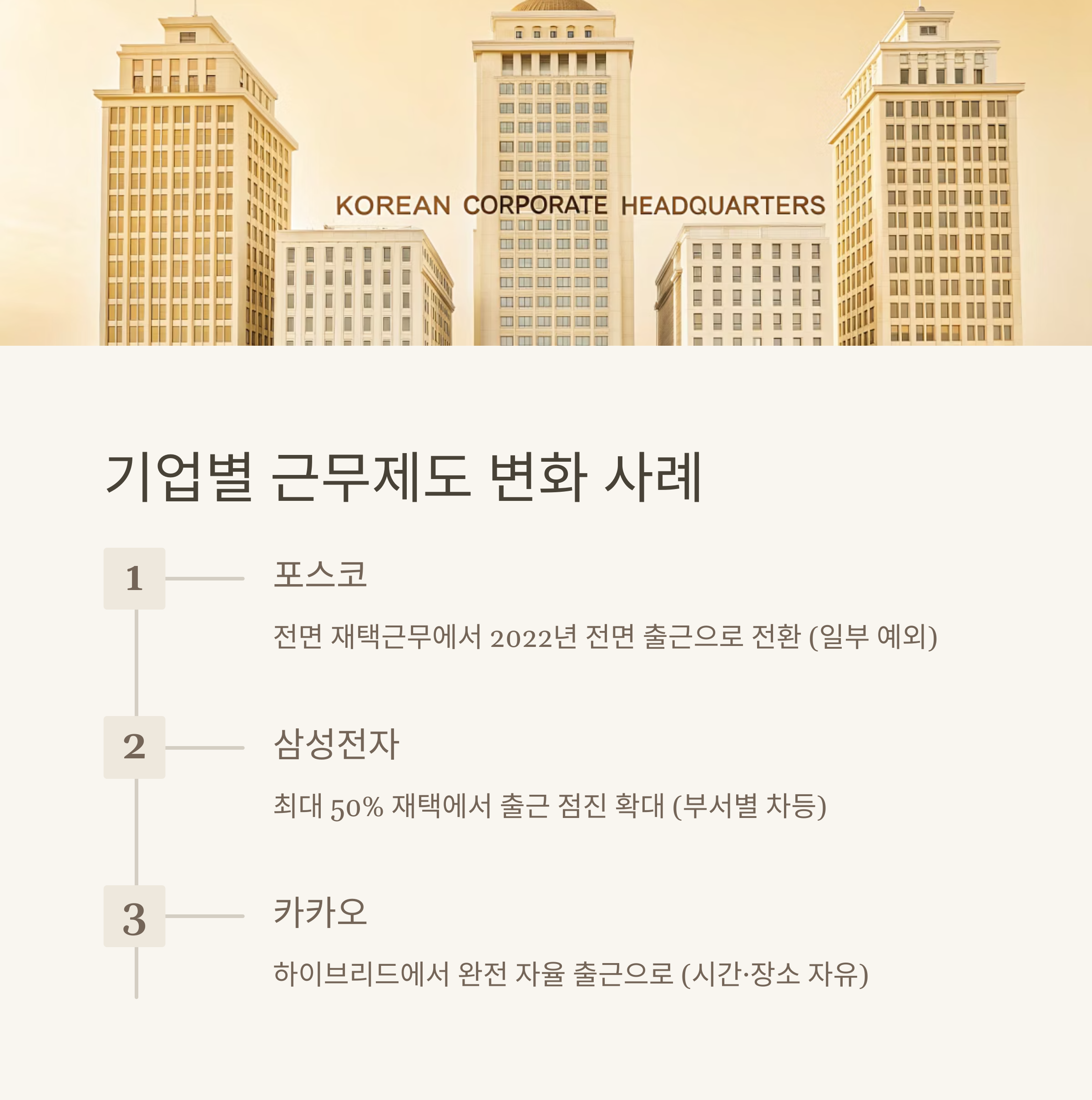 | 삼성전자 | 최대 50% 재택 | 출근 점진 확대 | 부서별 차등 |