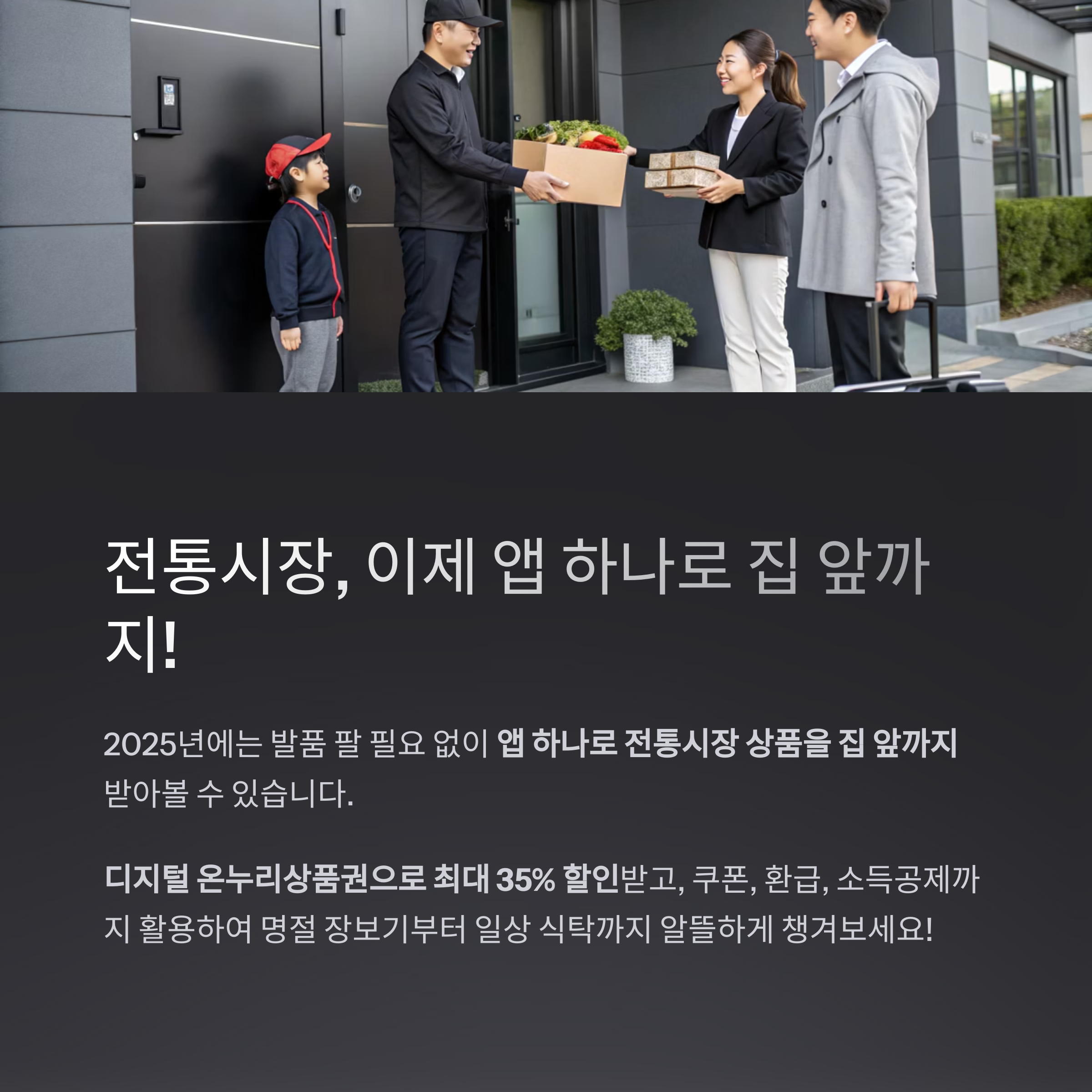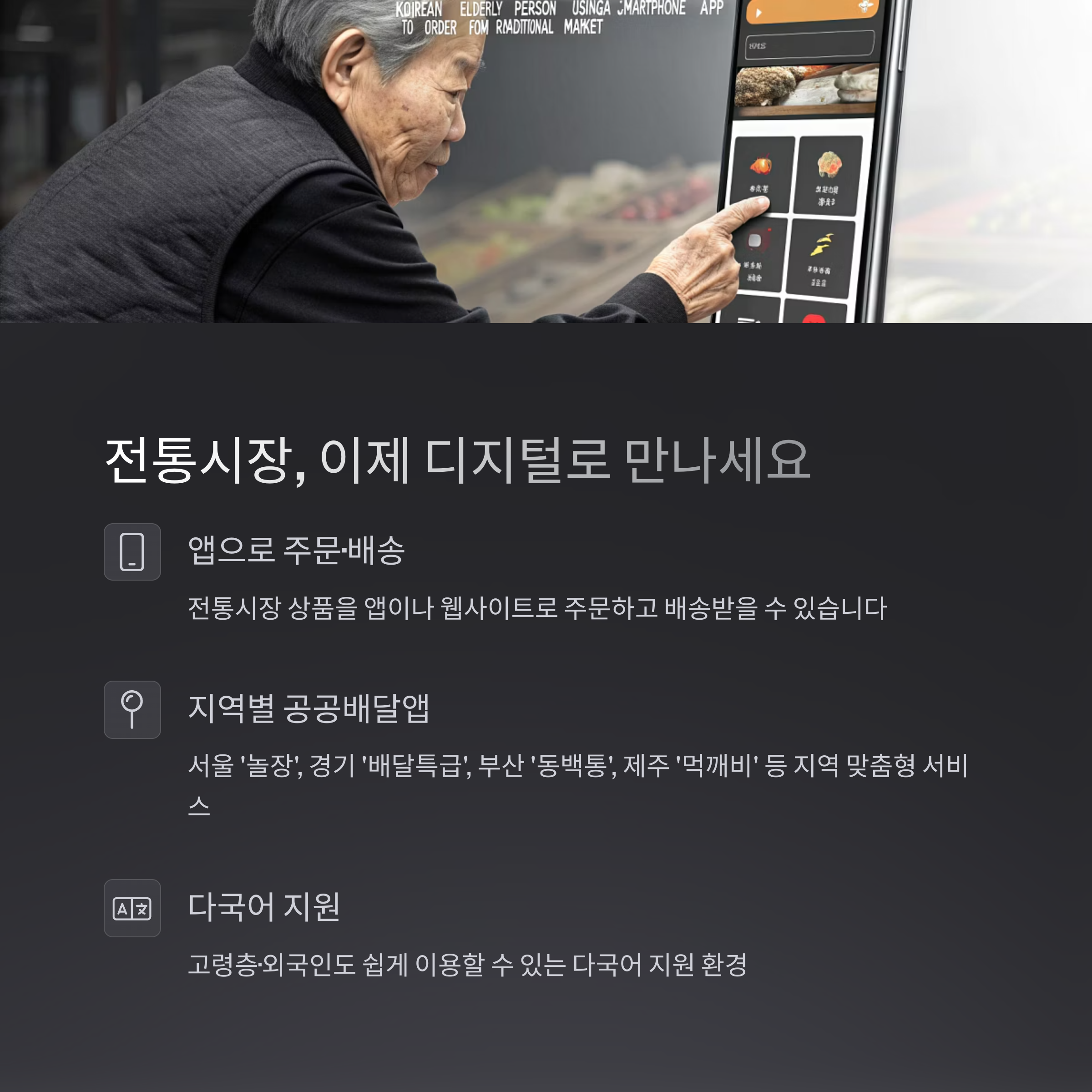 앱 하나로, 전통시장 상품을 집 앞까지 받아볼 수 있는 시대입니다.