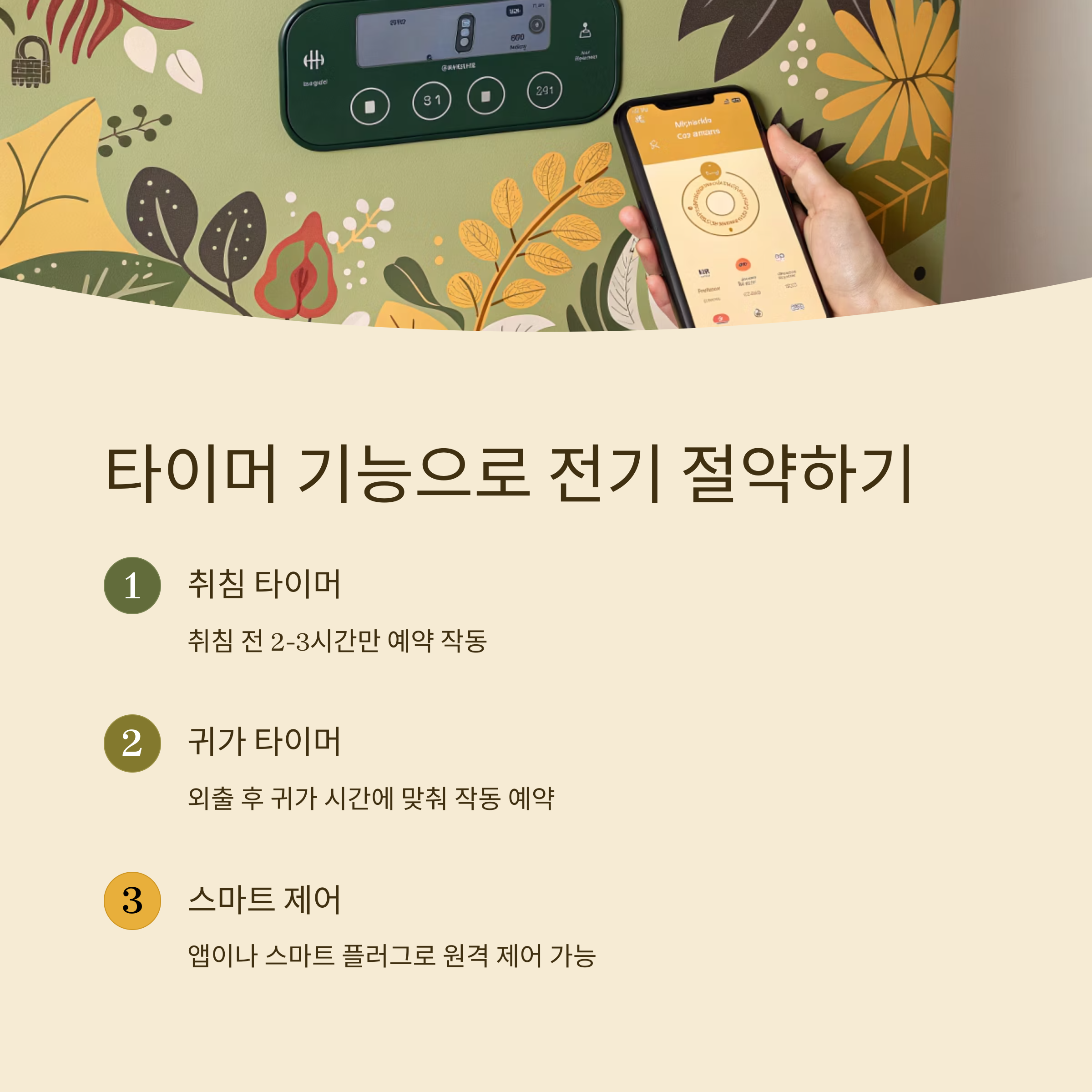 타이머 기능을 활용해 필요한 시간만 작동시키는 것이 중요합니다.