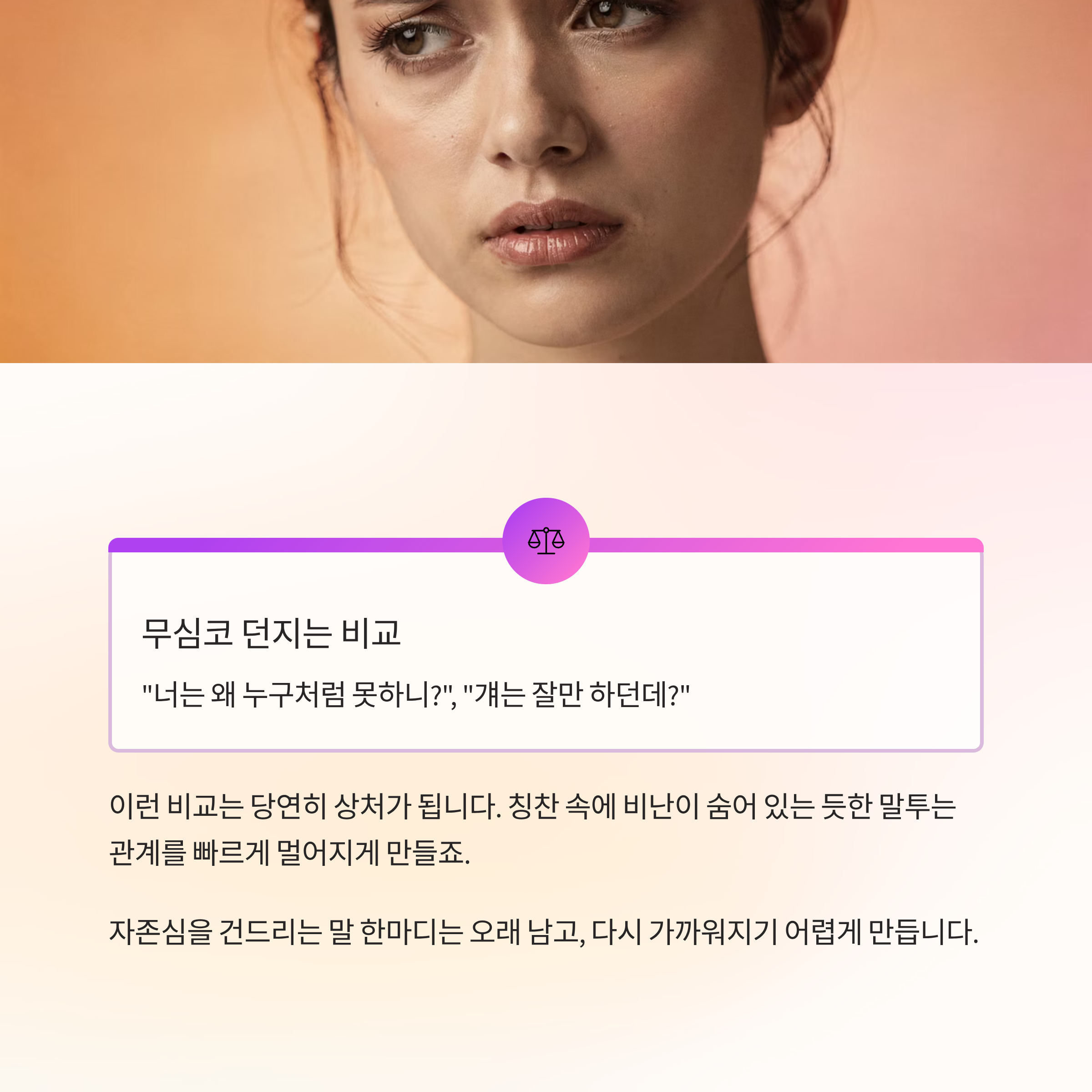 이런 비교는 당연히 상처가 됩니다.